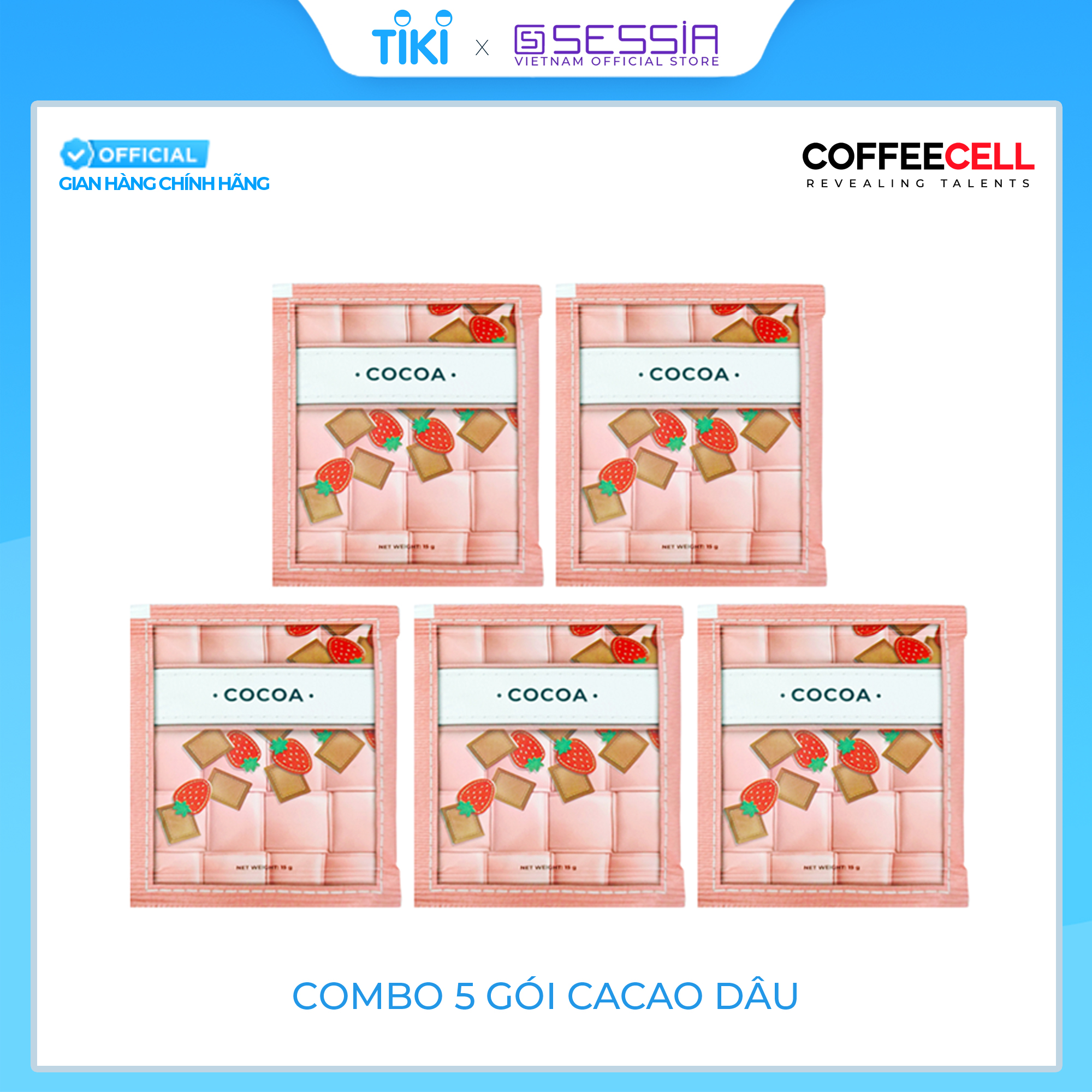 COMBO 5 GÓI CACAO & DÂU TÂY VỚI NHÂN SÂM HOÀNG ĐẾ - COFFEECELLNhững trái dâu tây đỏ mọng với mùi hương quyến rũ đã được nghiền thành dạng bột mịn hòa quyện với Cacao có vị nồng ấm kết hợp với s...