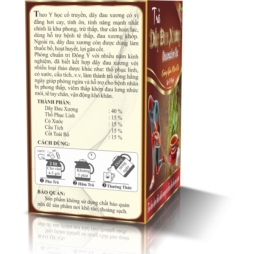 Mua tại TiktokTRÀ DÂY ĐAU XƯƠNG Theo Y học cổ truyền, dây đau xương có vị đắng hơi cay, tính ôn, tính năng mạnh nhất chính là khu phong, trừ thấp, thư cân hoạt lạc, dùng hỗ trợ bệnh tê thấp, đau xương khớp. Ngoài ra, dây đau xương còn được dùng làm thuốc bổ, hoạt huyết, lợi gân cốt. Phòng chuẩn tri Đông Y với nhiều năm kinh nghiệm, đã biết kết hợp dây đau xương với nhiều loại thảo dược khác như: thổ phục linh, cỏ xước, cẩu tí, làm thành trà uống hằng ngày giúp phòng ngừa và hỗ trợ cho bệnh nhân bị phong thấp, viêm thấp khớp đau lưng nhức mỏi, tê tay chân, vận động khó khăn.