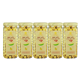 Mua tại Tiktok- Combo 5 Hũ Sen Sấy Gừng Mật Ong Hải Long (230g / Hũ) với thành phần hạt sen nguyên chất, có sự kết hợp với gừng và mật ong, được bóc tách vỏ cẩn thận nhưng vẫn đảm bảo độ giòn, ngọt pha chút bùi bùi rất riêng của loại hạt giàu dinh dưỡng này.
