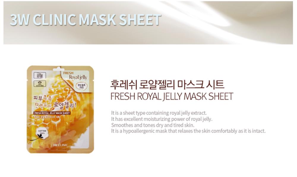 Mặt nạ chiết suất ong chúa 3W Clinic Fresh Royal Jelly Mask Sheet có đặc điểm gì?