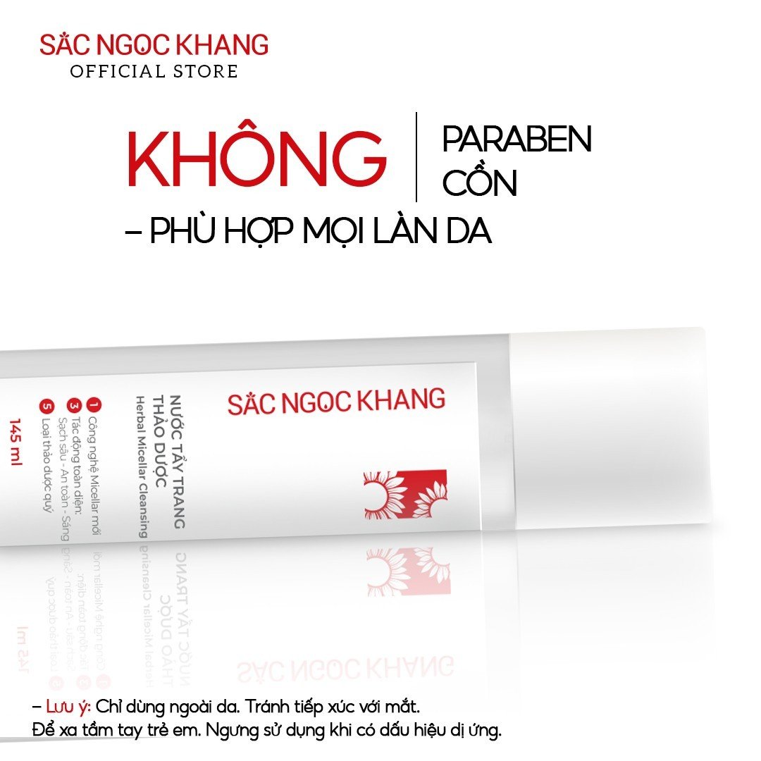 Combo 5 món Nước tấy trang 145ml + Sữa rửa mặt 100g + Nước hoa hồng 145ml + Kem chống nắng 50g + Kem dưỡng da ban đêm 30g [Sắc Ngọc Khang Official] Nước tẩy trang Sắc Ngọc Khang 145ml Micellar Cleasing Water Tẩy sạch sâu – Dưỡng mịn da