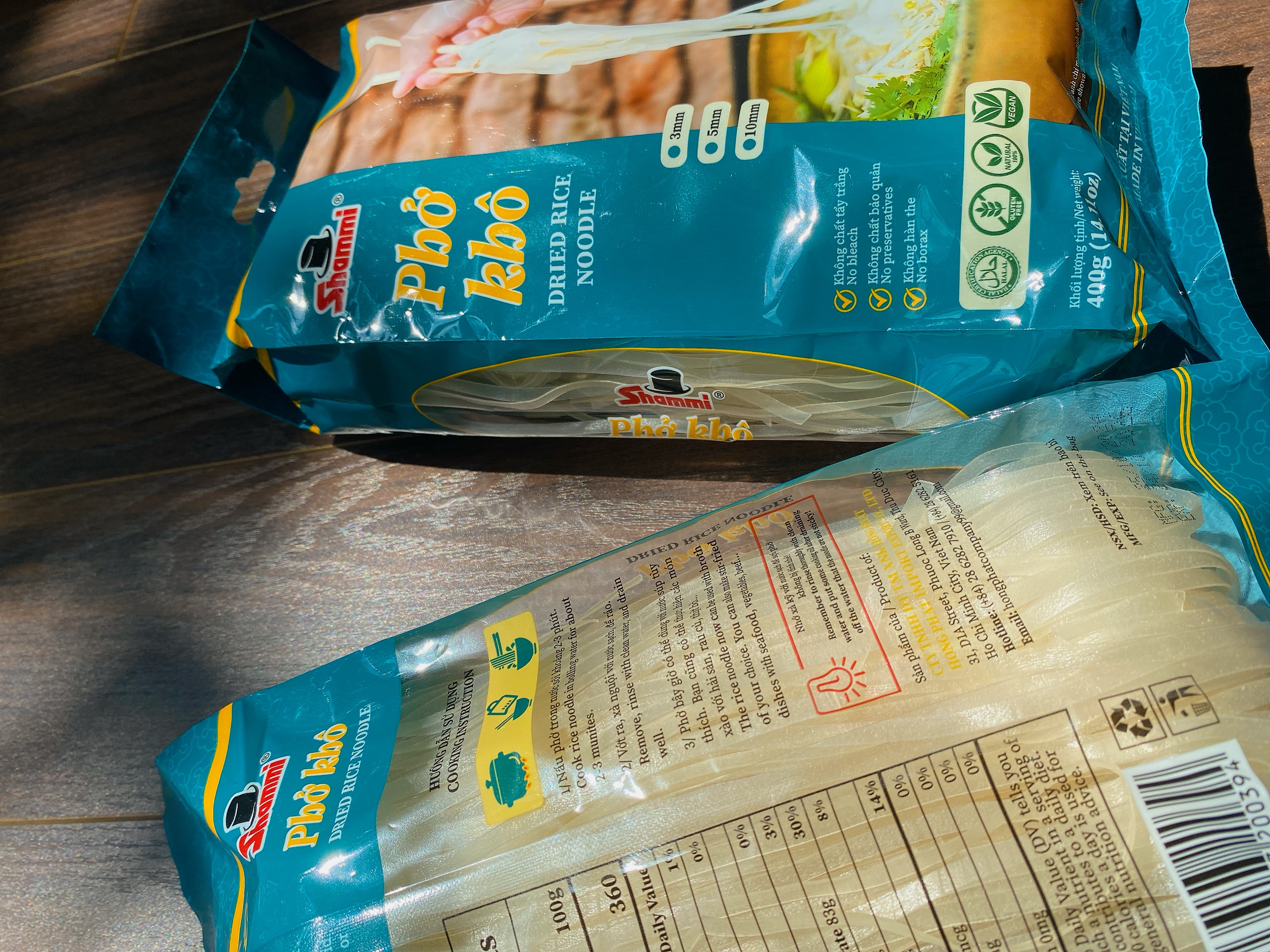 Sợi phở dai dai, bùi bùi, màu trắng chuẩn vị sợi phở Việt Nam được làm từ 100% nguyên liệu tự nhiên chất lượng, đảm bảo an toàn. Phở khô Shammi gói 400g giúp bạn