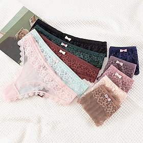 QUẦN REN NƠ LỌT KHE SEXY TỪ 40-55KG DÀNH CHO NỮ : 1. Chất liệu : Ren 2. Thiết kế : Ren, có nơ, siêu quyến rũ 3. Màu sắc : Giao màu ngẫu nhiên