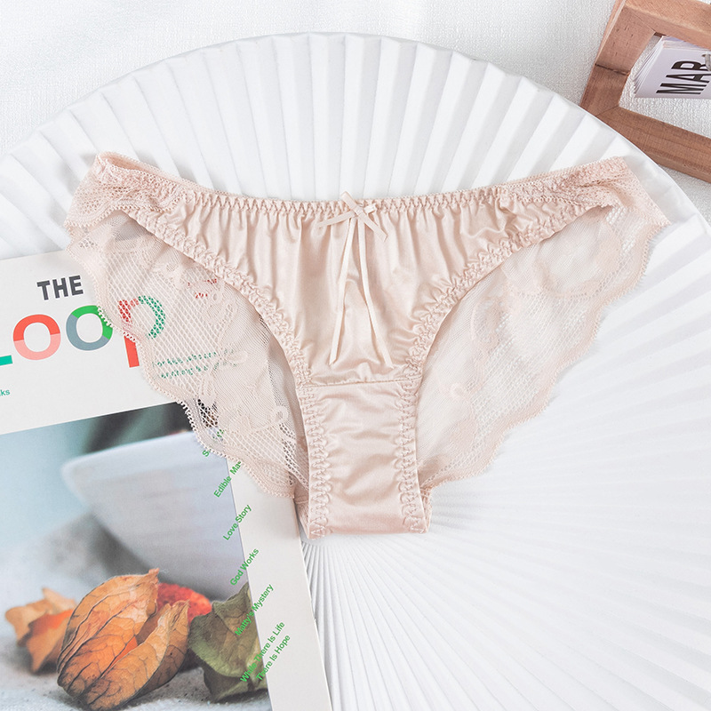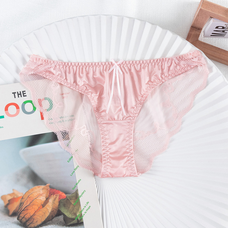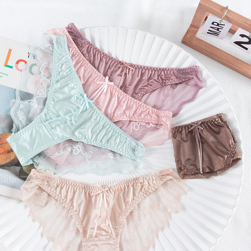 Combo 5 Quần Lót Nữ Phi Lụa Phối Ren Xinh Xắn 0501 – Mềm Mịn, Thoáng Mát, Không Viền Điểm nổi bật - Chất liệu phi lụa cao cấp: Mặt trước bóng mượt như lụa,