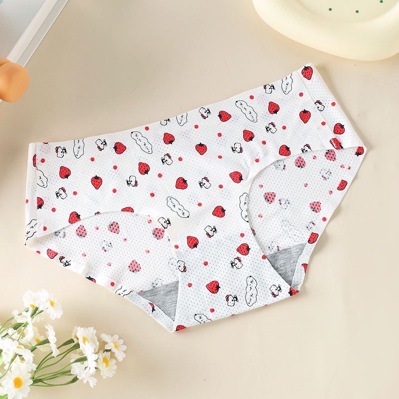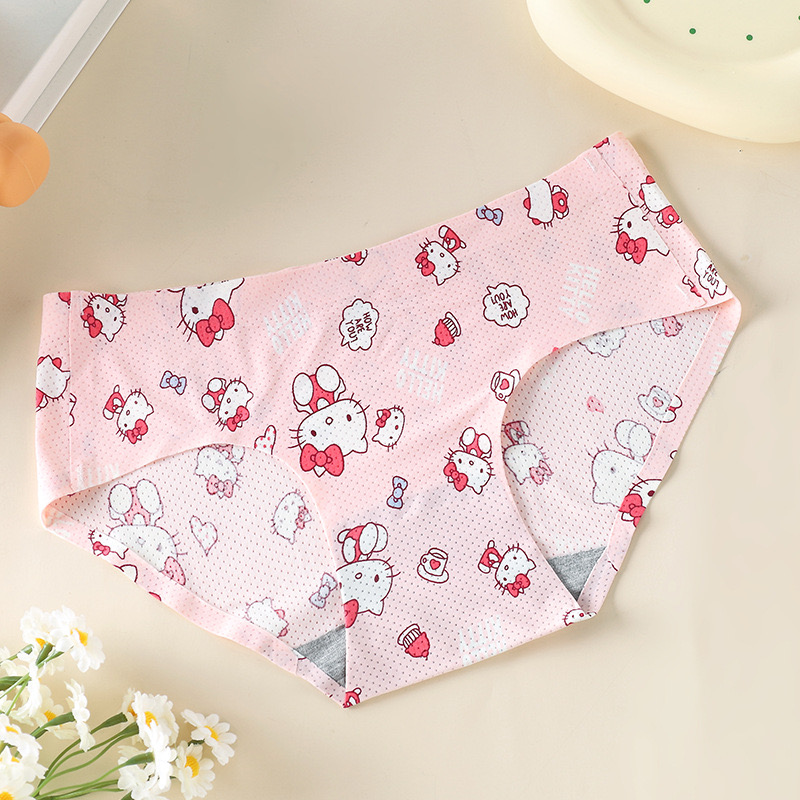 - Chi tiết sản phẩm Chất liệu su thông hơi cao cấp Pha nylon & spandex co giãn 360°, mềm mịn, thấm hút mồ hôi và thông thoáng nhờ các lỗ khí nhỏ li ti. Thiết kế seamless không đường may Công nghệ dập nhiệt liền mảnh, phẳng mịn, hạn chế vết hằn, “mặc như không mặc”. Họa tiết trẻ trung, đáng yêu 5 mẫu in độc đáo gồm mèo Kitty hồng, bé gấu hoạt hình, họa tiết trái tim, chấm bi pastel, họa tiết hoạt hình đa sắc—tăng độ “cute” cho tủ nội y. Form full–coverage Che phủ mông hoàn hảo, cạp vừa phải, ôm gọn mà không siết, phù hợp mặc cùng quần ôm, váy bodycon, quần jean.