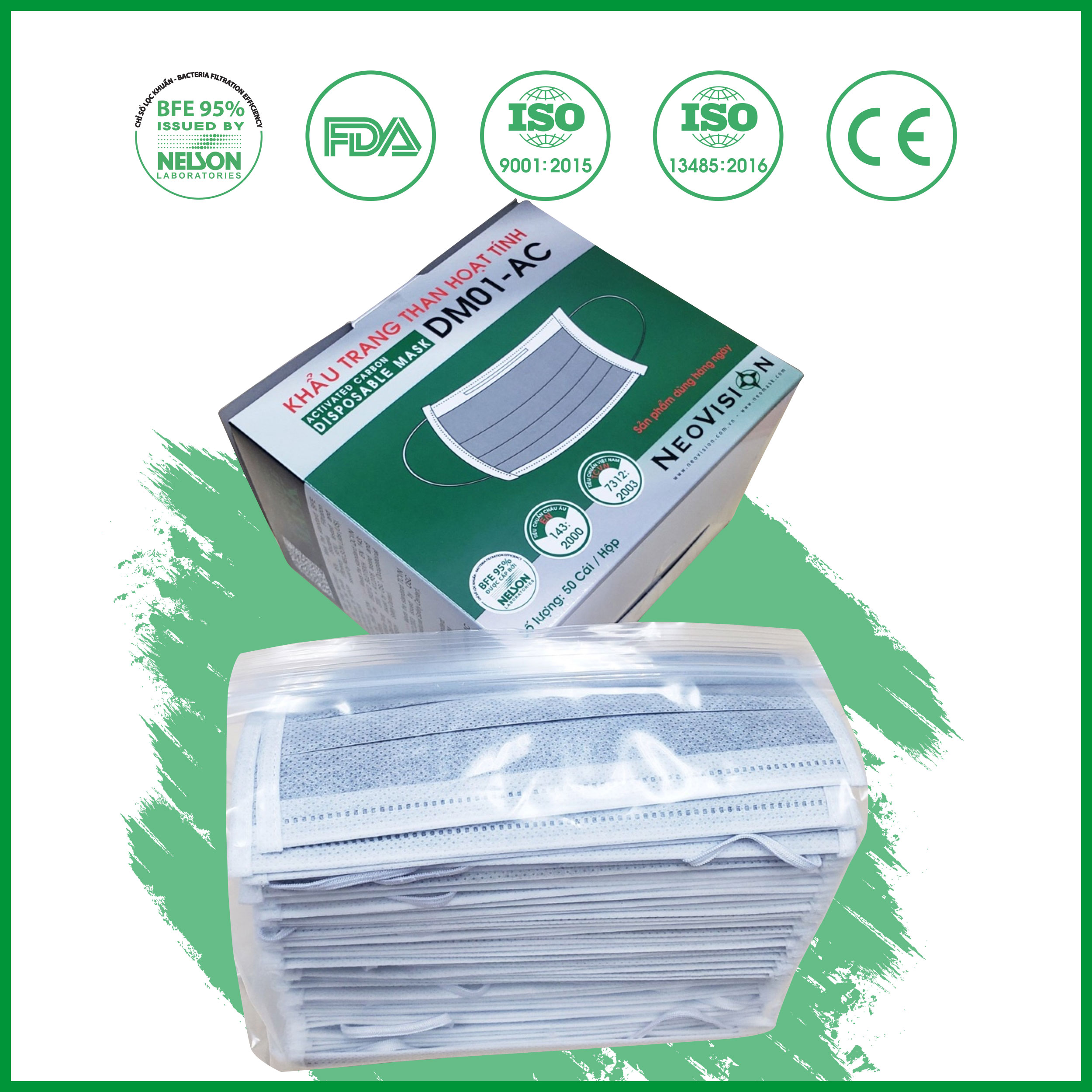 ✨Combo 50 Khẩu trang than hoạt tính DM01-AC đạt chuẩn lọc khuẩn Nelson (Hoa Kỳ)