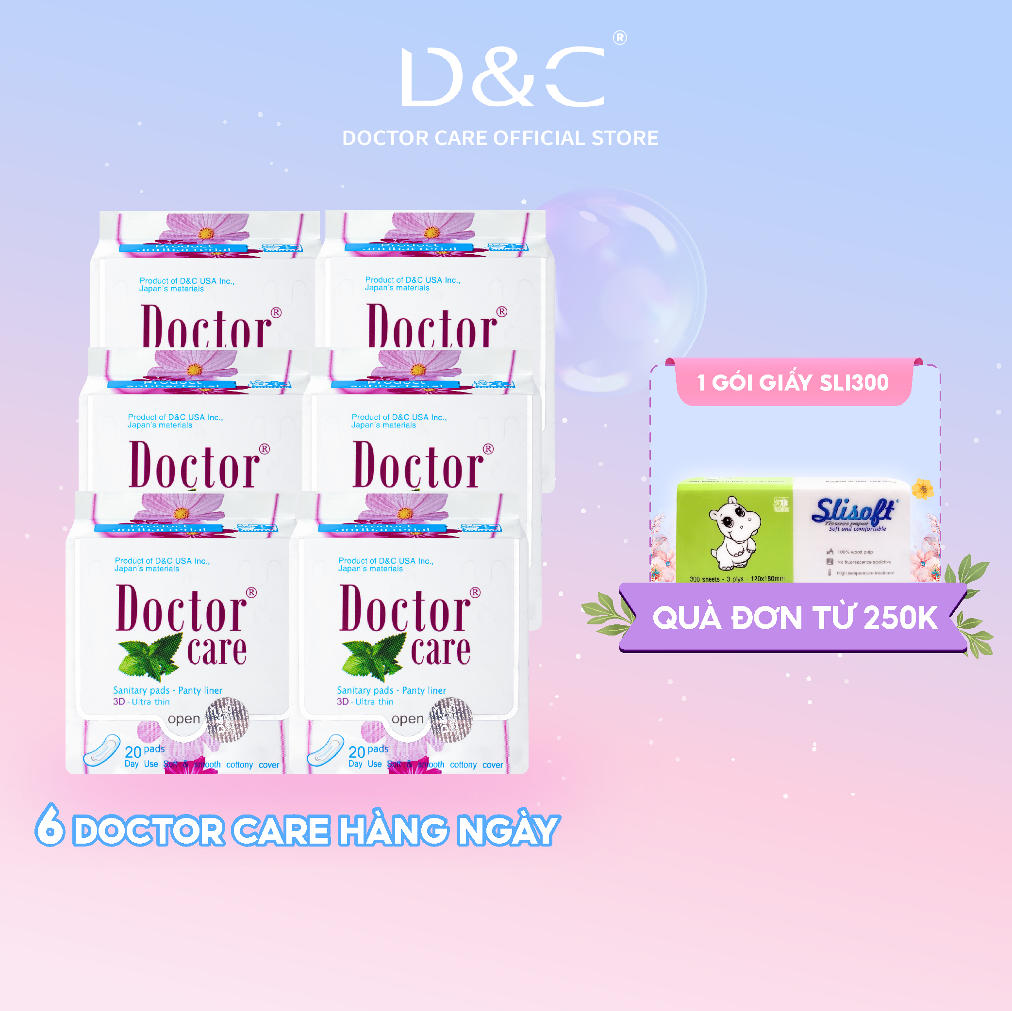 - Đóng gói: [6 gói x 20 miếng] ĐẶC ĐIỂM NỔI BẬT BĂNG VỆ SINH HÀNG NGÀY DOCTOR CARE: