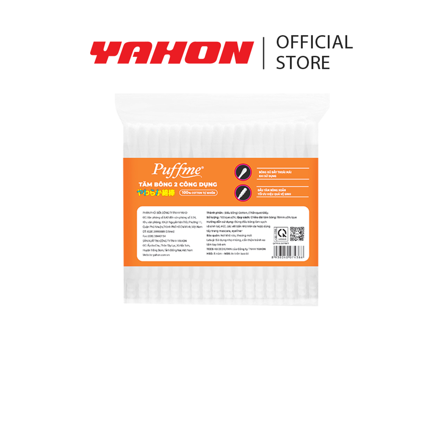 TĂM BÔNG 2 CÔNG DỤNG PUFFME 100 QUE Tăm bông 2 công dụng PUFFME bao zipper 100 que sử dụng chất liệu an toàn cho người dùng: Đầu bông cotton mềm mại và sạch sẽ, không sử dụng keo hóa học trên đầu bông, giúp thấm hút tốt; Thân que giấy cứng cáp, thân thiện với môi trường. Cấu tạo tăm bông đặc biệt gồm có: - 1 đầu bông tròn đầy đặn, mềm xốp tự nhiên mang lại cảm giác êm ái khi sử dụng. - 1 đầu bông xoắn giúp tối ưu hiệu quả vệ sinh. Thành phần: (Đầu bông) Cotton, (Thân que) Giấy Quy cách: chiều dài tăm bông 75mm ±5%/que, 100 que/bao Hướng dẫn dử dụng: Dùng đầu bông làm sạch vệ sinh tai, mũi, các vết bẩn nhỏ trên da hoặc dùng tẩy trang mascara, eyeliner Hạn sử dụng: 5 năm kể từ ngày sản xuất NSX: in trên bao bì #Puffme