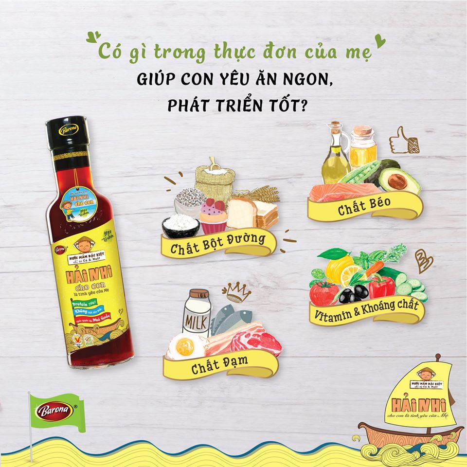 NƯỚC MẮM ĐẶC BIỆT HẢI NHI cho con Nước mắm đặc biệt Hải Nhi là câu chuyện của những con thuyền ra khơi khi màn đêm buông xuống để sớm mai chở về cho con mẻ cá cơm tươi đầy, làm nguyên liệu ủ chượp vào các thùng gỗ gia truyền tại làng nghề Phú Quốc. Ấp ủ suốt 12 tháng ròng, chắt chiu những giá trị tinh tuý của rừng vàng biển bạc, cho ra những giọt nước mắm đầu tiên, dành riêng cho con hoàn toàn sự tự nhiên và tinh khiết như tình yêu thương của Mẹ. *ĐIỂM MẠNH: