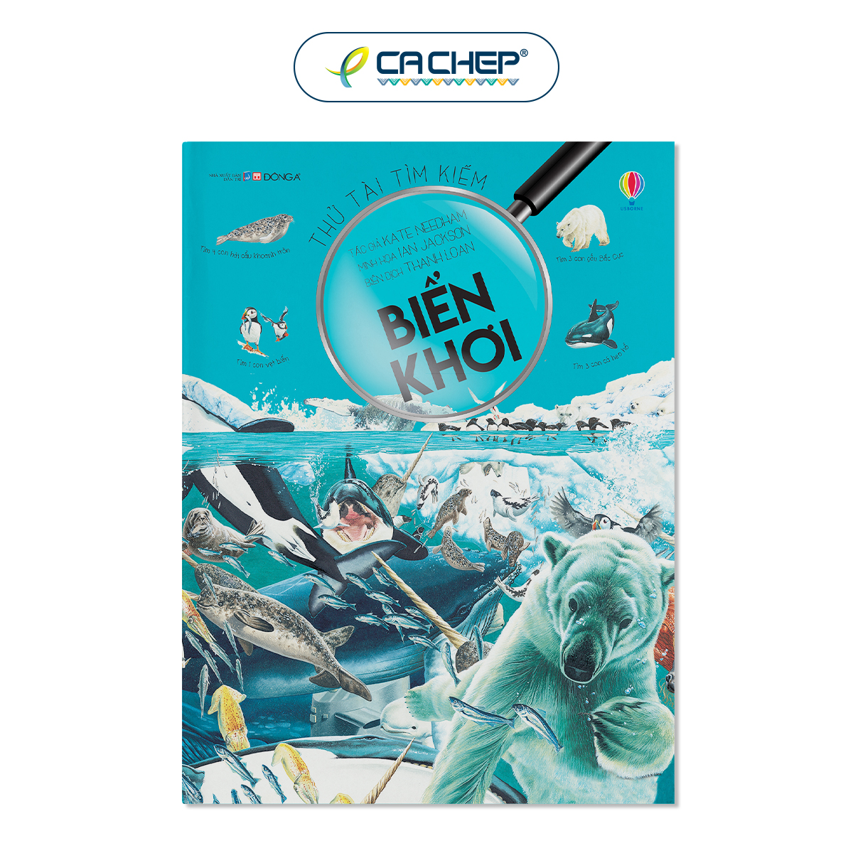 Từ bạch tuộc khổng lồ và cá mập trắng đến những thợ lặn biển sâu và kho báu dưới biển, trong các trang của cuốn sách tranh tuyệt đẹp này có nhiều thứ để em tìm kiếm. Thử tài tìm kiếm – Biển khơi chứa đựng vô vàn thông tin thú vị về thế giới trong lòng biển, từ rạn san hô kì diệu đến đáy đại dương sâu thẳm.