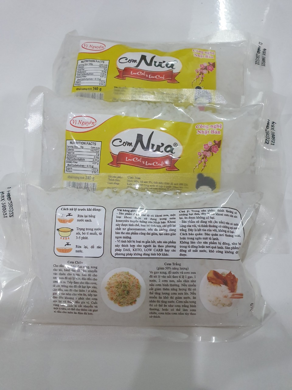 - Bảo quản: Nơi thoáng mát Những thực phẩm được làm từ bột Glucomanna có trong củ nưa, một chất xơ chứ không phải là tinh bột. Sản phẩm được sản xuất theo công nghệ Nhật Bản, không chất bảo quản. ️ THÀNH PHẦN: Cơm nưa chiếm 97% chất xơ. Năng lượng 5-30kCal/100g ️ Cách sơ chế: mở hộp đổ bỏ nước muối ngâm, rửa qua bằng nước, thả vào nước sôi cho sôi lại 3-5′. Sau đó có thể chế biến đa dạng như cơm chiên , cơm chiên trứng , vì đặc trưng của em nó là càng nấu lâu càng ngấm gia vị, đặc biệt là không hề trương hay nhũn, luôn luôn dai ngon. Cơm có hàm lượng chất xơ rất cao, là loại củ có thành phần dinh dưỡng là 0 carb from sugar và gần như 0 kcal. phù hợp với mọi lứa tuổi, mọi chế độ ăn kiêng, kể cả DAS, Lowcarb.