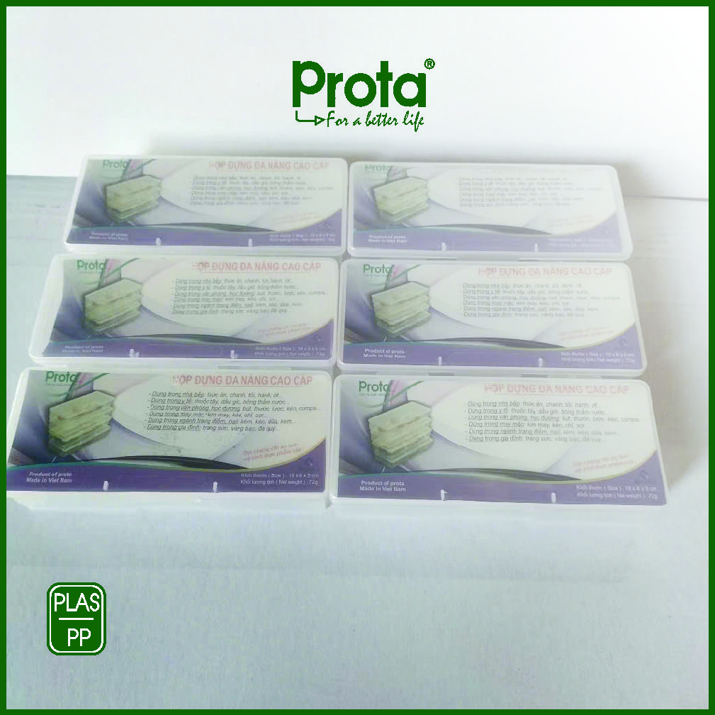 Hộp đựng đồ đa năng Prota được làm từ nhựa PP cao cấp có nắp đậy kín giúp chống bụi và ngăn ẩm. Có thể dễ dàng nhìn thấy những vật dụng bên trong mà không cần mở nắp. Sản phẩm dùng đựng kềm, kéo, dũa, kim, chỉ, bút, thước, nữ trang... Dùng trong y tế : thuốc tây, bông thấm nước, Dùng trong học đường : thước, viết, compa… Dùng trong nhà bếp : tỏi, hành, ớt… Dùng trong ngành nail : kèm cắt, dũa… Giúp bạn sắp xếp đồ đạc một cách gọn gàng và dễ dàng tìm kiếm chúng khi cần.