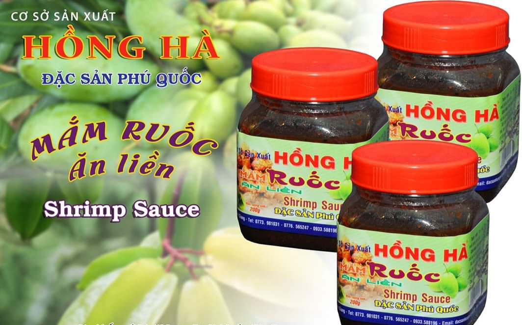 Đặc sản Phú Quốc - Mắm Ruốc Hồng Hà là sản phẩm được sản xuất và đóng gói tại đảo Phú Quốc. - Mắm ruốc ăn liền Hồng Hà được làm từ: con ruốc,