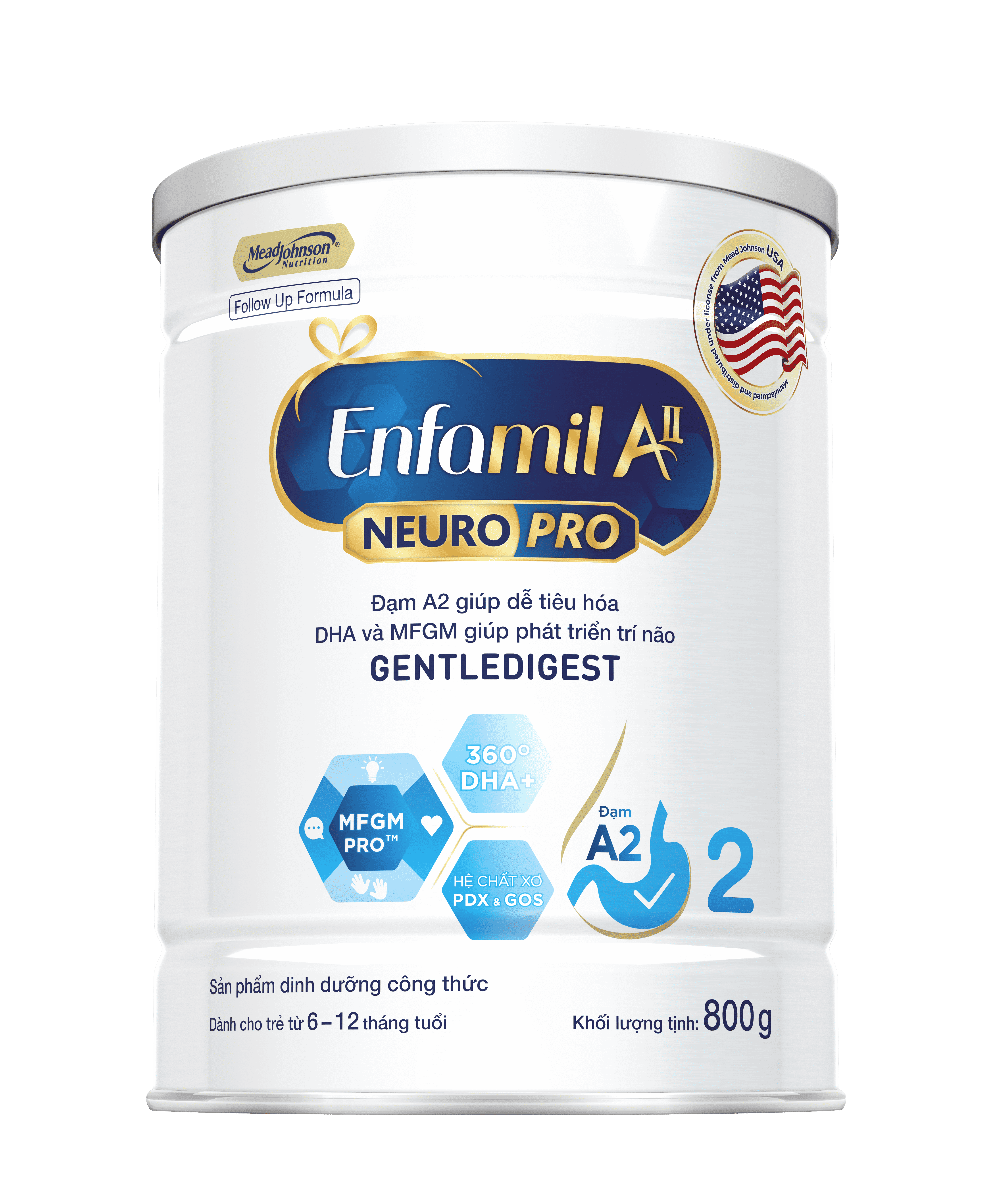 - Sữa bột Enfamil A2 Neuropro 2 là sản phẩm sữa công thức cao cấp với nguồn dinh dưỡng hoàn chỉnh, với thành phần đạm quý A2 từ New Zealand và bộ đôi vàng DHA & MFGM giúp khỏe bụng sáng trí.