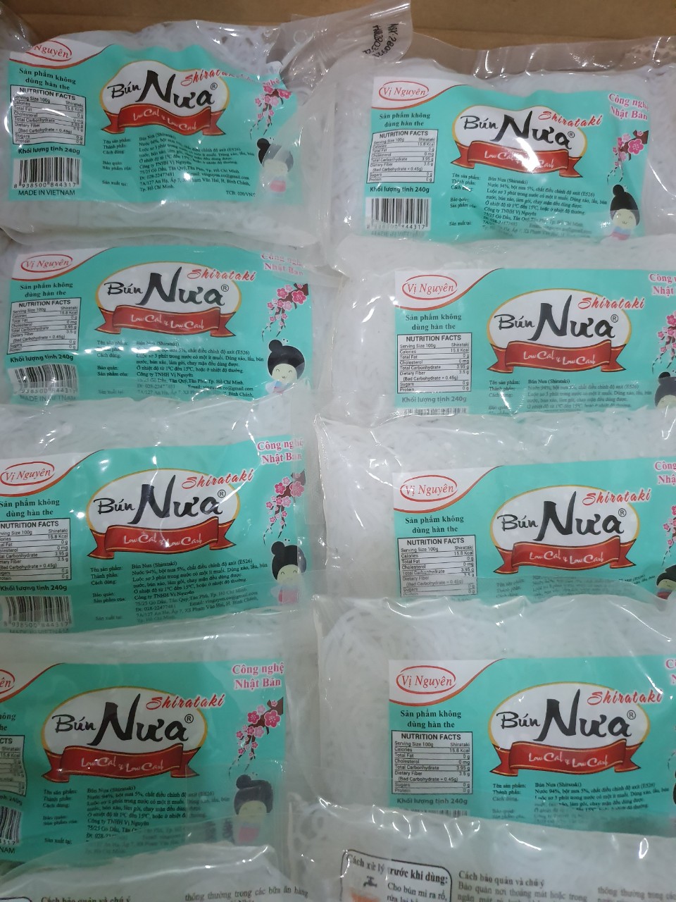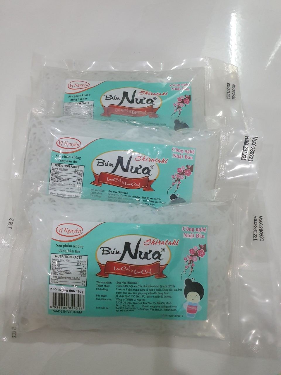 - Bảo quản: Nơi thoáng m️át Những thực phẩm được làm từ bột Glucomanna có trong củ nưa, một chất xơ chứ không phải là tinh bột. Sản phẩm được sản xuất theo công nghệ Nhật Bản, không chất bảo quản. THÀNH PHẦN: Bún nưa chiếm 97% chất xơ. Năng lượng 5-30kCal/100g ️ Cách sơ chế: mở hộp đổ bỏ nước muối ngâm, rửa qua bằng nước, thả vào nước sôi cho sôi lại 3-5′. Sau đó có thể chế biến đa dạng như bún miến bình thường như làm bún trộn, bún xào, hoặc bún nước, đặc biệt ăn lẩu với bún Shi cực chuẩn, vì đặc trưng của em nó là càng nấu lâu càng ngấm gia vị, đặc biệt là không hề trương hay nhũn, luôn luôn dai ngon. Bún có hàm lượng chất xơ rất cao, là loại củ có thành phần dinh dưỡng là 0 carb from sugar và gần như 0 kcal. phù hợp với mọi lứa tuổi, mọi chế độ ăn kiêng, kể cả DAS, Lowcarb.