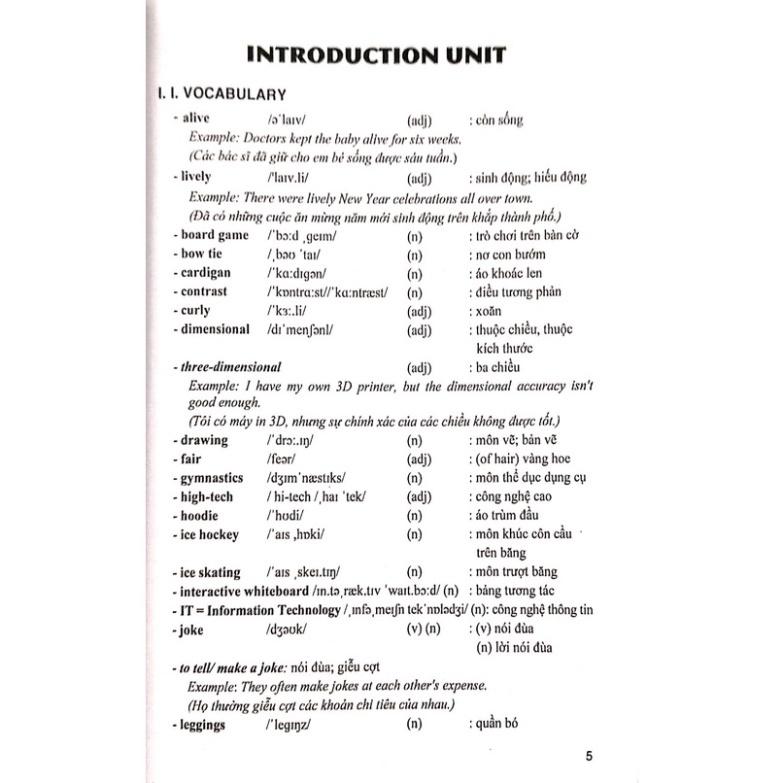 Vocabulary: giải thích ý nghĩa những từ mới trong mỗi Unit; có một số ví dụ minh hoạ cách dùng từ.