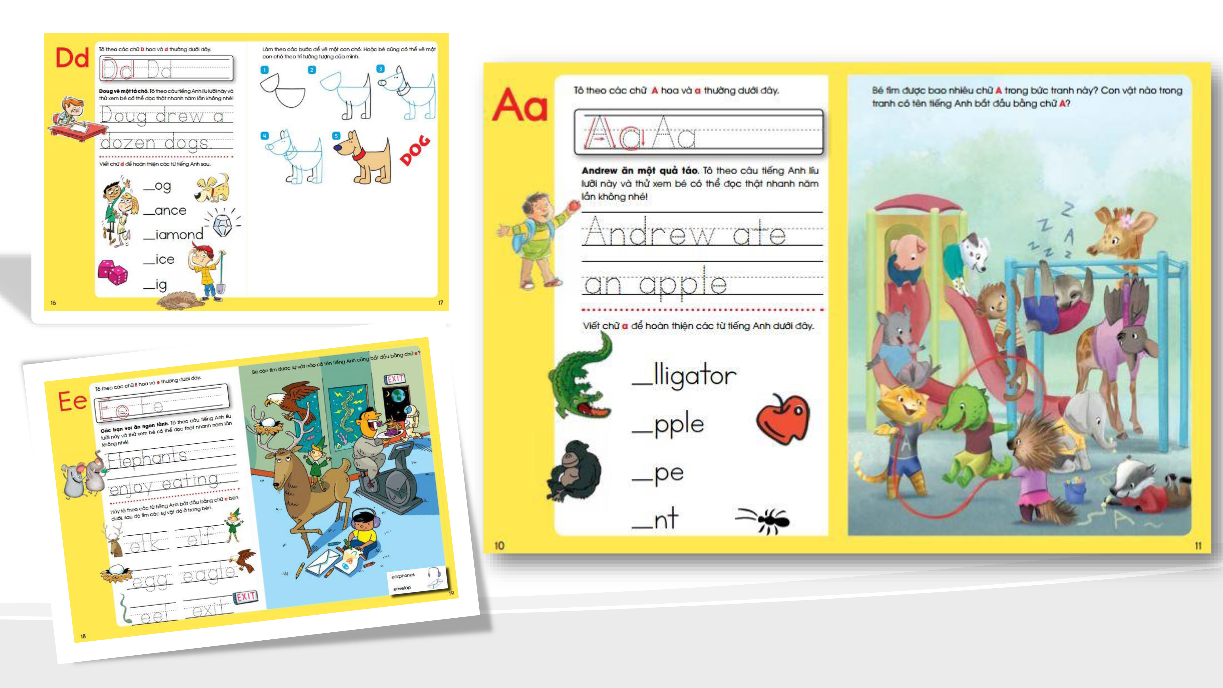 Bộ sách gồm 6 cuốn dành cho trẻ từ 4 đến 6 tuổi, tổng số 540 trang được in màu toàn bộ. Trong đó có 960 bài tập bằng hình ảnh và trò chơi được
