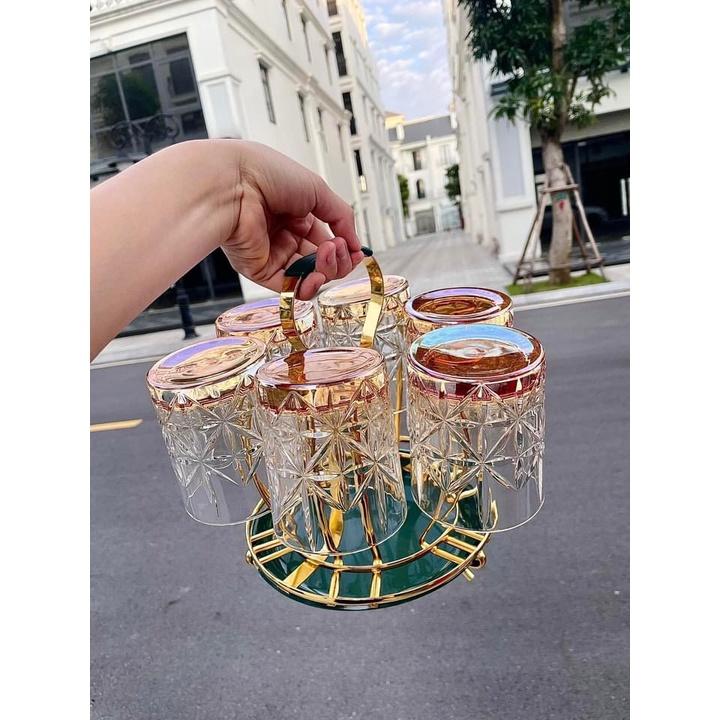 Bộ bình 6 cốc thủy tinh chịu nhiệt mạ vàng cao cấp