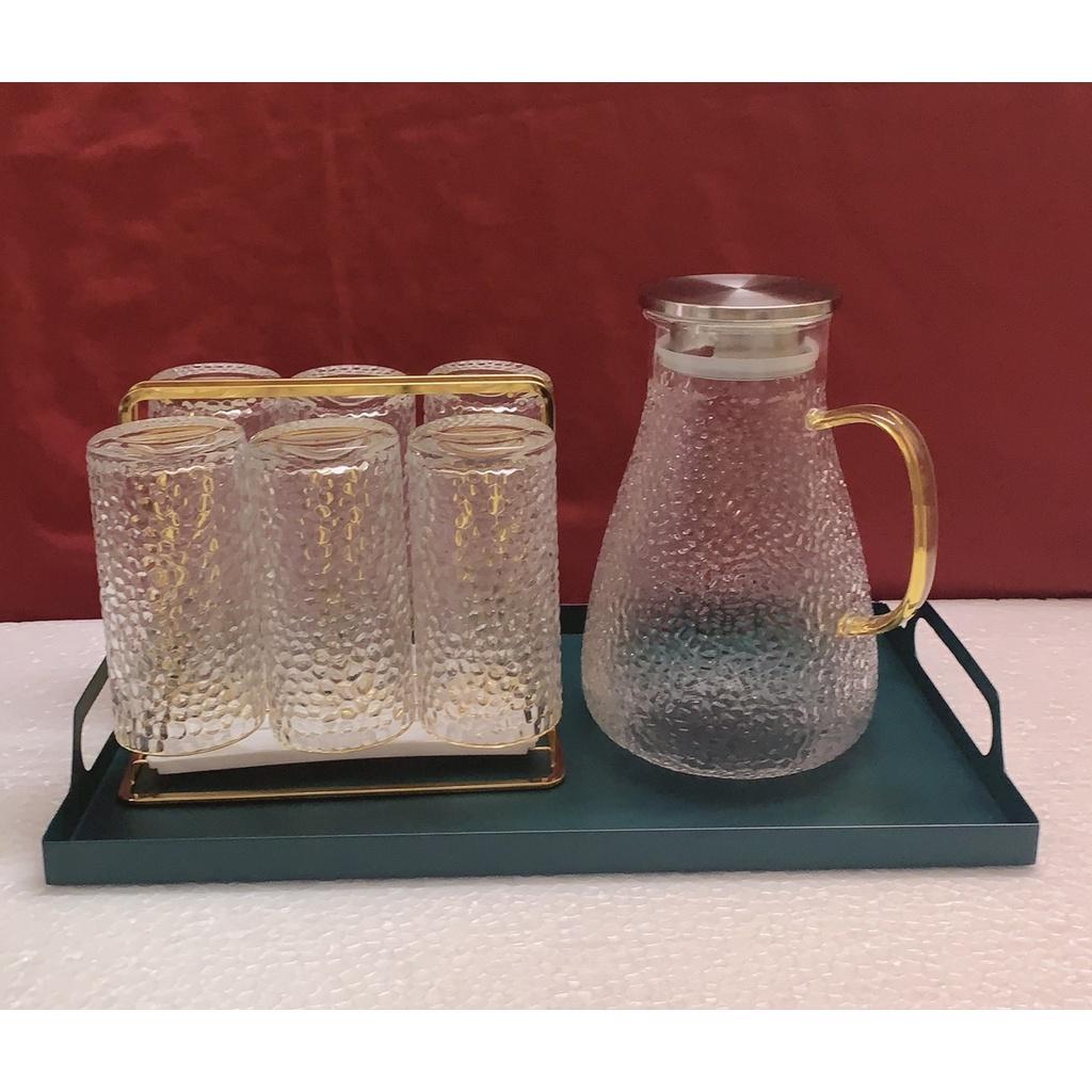 ✨COMBO BỘ BÌNH CỐC THỦY TINH CHỊU NHIỆT CAO CẤP LÊN ĐẾN 400 ĐỘ C KÈM KHAY SẮT XANH ( BÌNH BẦU )