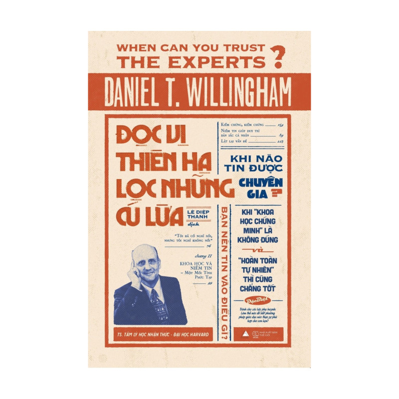 - Đọc Vị Thiên Hạ Lọc Những Cú Lừa "Được dựa trên các nghiên cứu khoa học" vẫn luôn là cụm từ được giới truyền thông và những người chào hàng tận dụng triệt để. Nhưng thế nào mới là "dựa trên" và thế nào mới là "nghiên cứu khoa học" đúng chuẩn? Giữa muôn vàn lời quảng cáo bay bổng tới tận mây xanh, liệu bạn có đủ tỉnh táo để nhận ra những cú lừa ngoạn mục để rồi không phải tiền mất tật mang? Hãy cùng tác giả Willingham từng bước vén bức màn bí ẩn đằng sau ngôn từ hoa mỹ và lật mặt những kẻ mạo danh khoa học. Cuốn sách này chắc chắn sẽ là cẩm nang bí quyết dẫn lối đưa đường cho bạn đến với sự thật phũ phàng. “Đây là một cuốn sách trí tuệ vô cùng hấp dẫn về một vấn đề quan trọng. Nếu bạn nghĩ giáo dục là một lĩnh vực phải được xây dựng trên cơ sở bằng chứng, thì đây là một cuốn sách đáng đọc. Còn nếu bạn coi giáo dục là một môn nghệ thuật không bị chi phối bởi khoa học, thì bạn rất cần phải đọc cuốn sách này.” – Russ Whitehurst, giám đốc, Trung tâm chính sách giáo dục Brown, Viện Brookings. Mời các bạn đón đọc!!