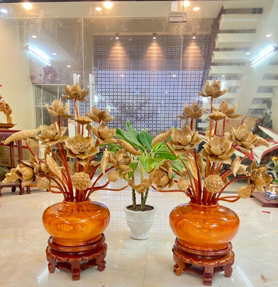 Giới thiệu 2 Bình Hoa Sen Trang Trí Bàn Thờ Gia Tiên rất phù hợp| Gỗ Hương Ta| 0389.8899.68(zalo)