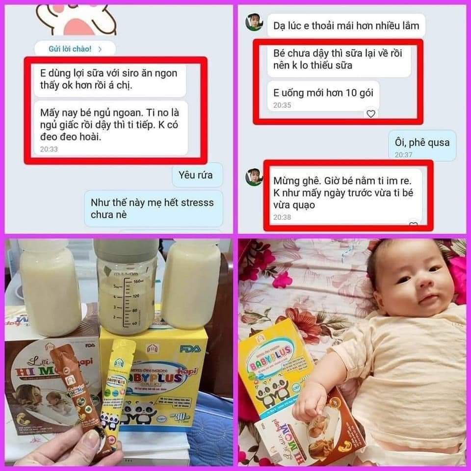 Combo Siro Ăn Ngon Baby Plus và Lợi Sữa Himom hỗ trợ nhiều sữa,con háu ăn ngủ ngoan cho mẹ sau sinh