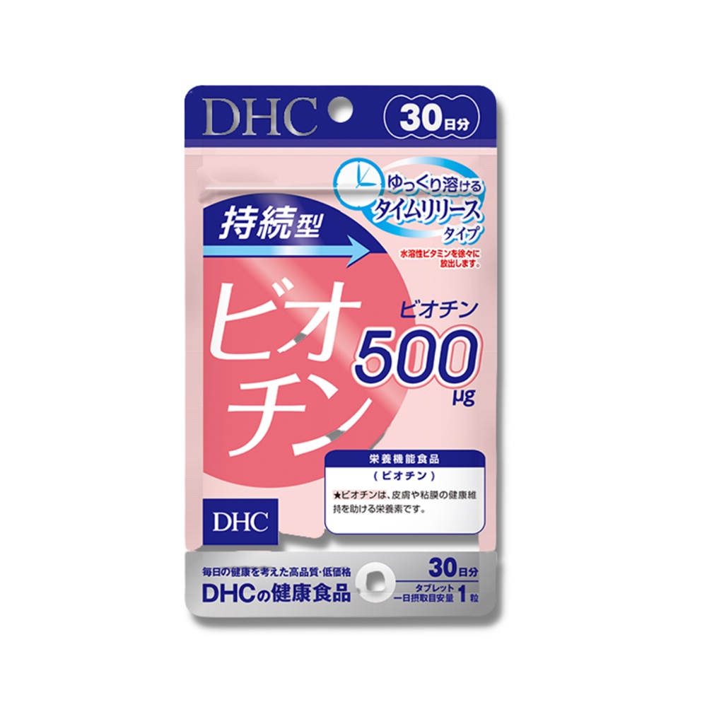 - Viên Uống Biotin DHC Nhật Bản 30 Ngày Biotin là một loại chất dinh dưỡng thiết yếu được phân loại vào nhóm vitamin B và còn được gọi là "vitamin H" hoặc "vitamin B7", đóng các vai trò khác nhau trong cơ thể như chuyển hóa đường, lipid và axit amin. Đặc biệt, biotin tham gia sâu vào việc duy trì sức khỏe làn da, niêm mạc, sự phát triển của móng tay và tóc. Nếu thiếu biotin thì cơ thể sẽ xuất hiện các triệu chứng về da như viêm da dị ứng và rụng tóc. Vì biotin có trong nhiều loại thực phẩm và cũng được tạo ra bởi vi khuẩn đường ruột nên về cơ bản đây là một chất dinh dưỡng hiếm khi bị thiếu hụt. Tuy nhiên, lối sống không đều đặn, thói quen ăn uống không cân bằng sẽ làm lượng biotin giảm đi. Ngoài ra, vì biotin tan trong nước nên nó sẽ nhanh chóng được đào thải ra khỏi cơ thể sau khi uống. Viên uống bổ sung biotin của DHC Biotin sử dụng thành phần hydroxypropyl methylcellulose (HPMC), tạo thành cấu trúc giống như gel khi hòa tan và được tạo thành công thức giải phóng bền vững (giải phóng dần dần theo thời gian *). Trong đó các thành phần được phân tán trong cơ sở (HPMC) và giải phóng từ từ. Các thành phần hữu ích dần dần được giải phóng, tính bền vững trong cơ thể có thể được nâng cao so với các sản phẩm thông thường. Sản phẩm bổ sung 500μg biotin mỗi ngày (theo hướng dẫn lượng hằng ngày) giúp bạn có mái tóc và làn da khỏe đẹp. CÔNG DỤNG Mọc tóc, đẹp da, tăng cường thể lực, ngừa rụng tóc do dị ứng, viêm da cơ địa. ĐỐI TƯỢNG SỬ DỤNG Những người muốn duy trì sức khỏe của tóc và da Những người muốn bổ sung hàm lượng biotin hiệu quả Những người không thể dùng bổ sung biotin thường xuyên qua bữa ăn hằng ngày. THÀNH PHẦN Đường bột (sản xuất tại Nhật Bản)/cellulose, hydroxypropyl methylcellulose, Ca stearate, silicon dioxide mịn, biotin. CÁCH DÙNG: Người lớn uống 1 viên/này, uống với nước hoặc nước ấm. Không nhai viên Lưu ý: