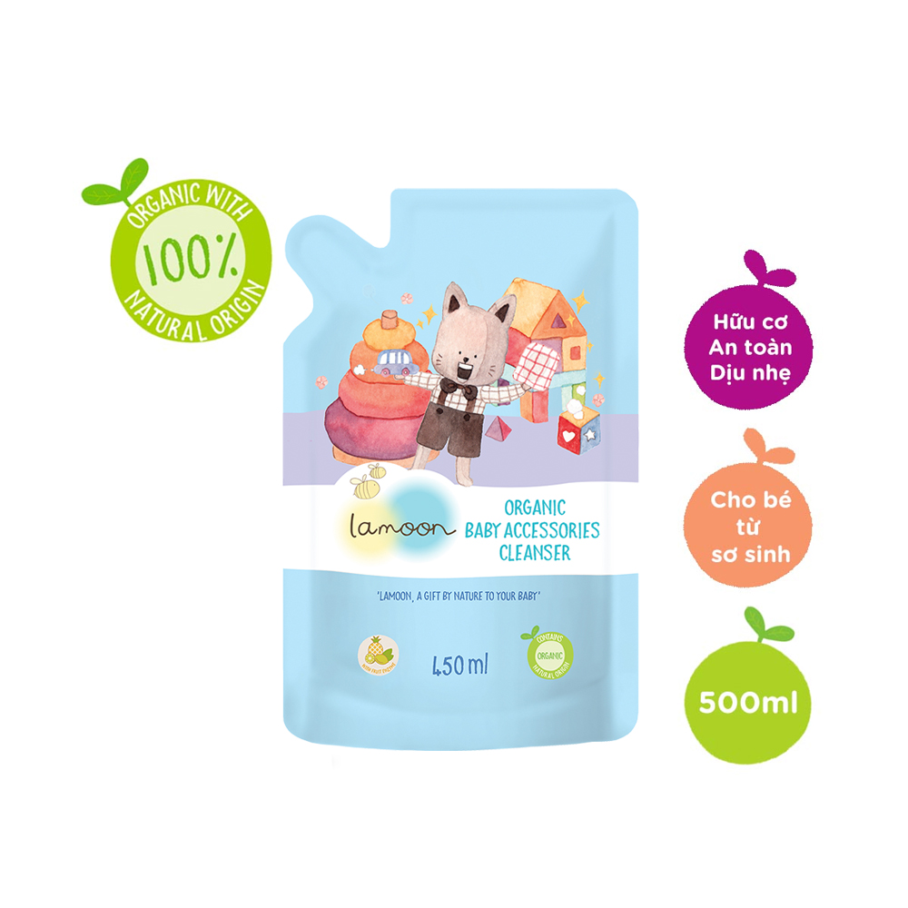 Nước rửa đồ chơi hữu cơ (organic) cho bé Lamoon – Túi 450ml