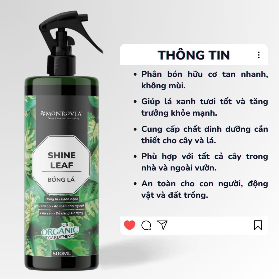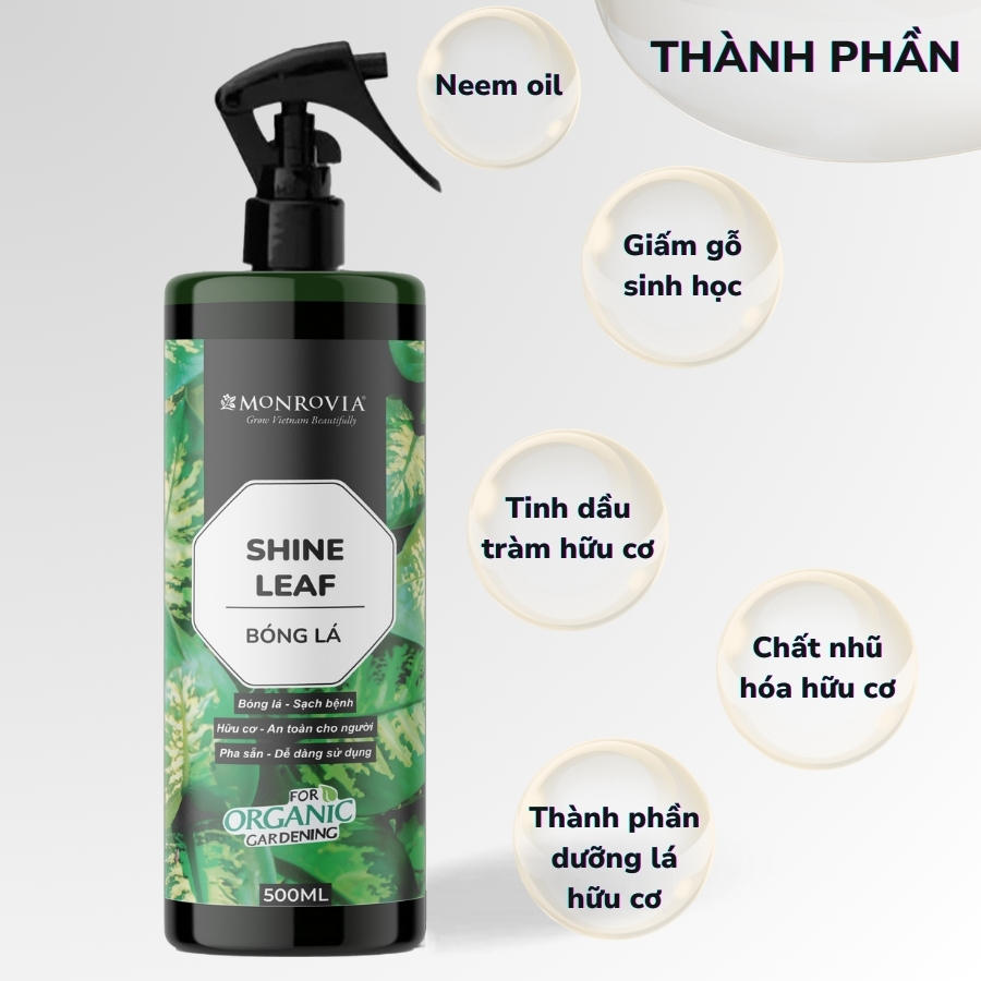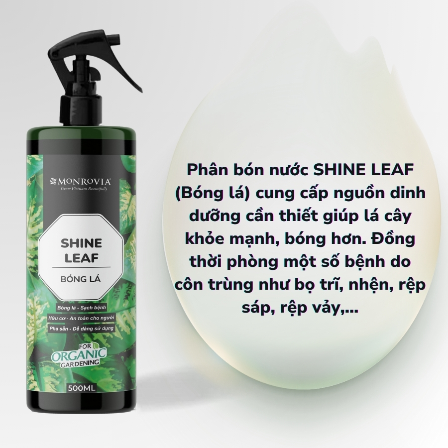Phân bón trong nhà BÓNG LÁ MONROVIA hữu cơ giúp lá xanh mướt, bóng cho cây cảnh dung tích 500ml  Phân bón hữu cơ đậu tương, đậu nành trứng chuối humic DOCNEEM kích mầm, chồi, hoa chuẩn form trên hoa hồng, cây cảnh, chai 1 lít