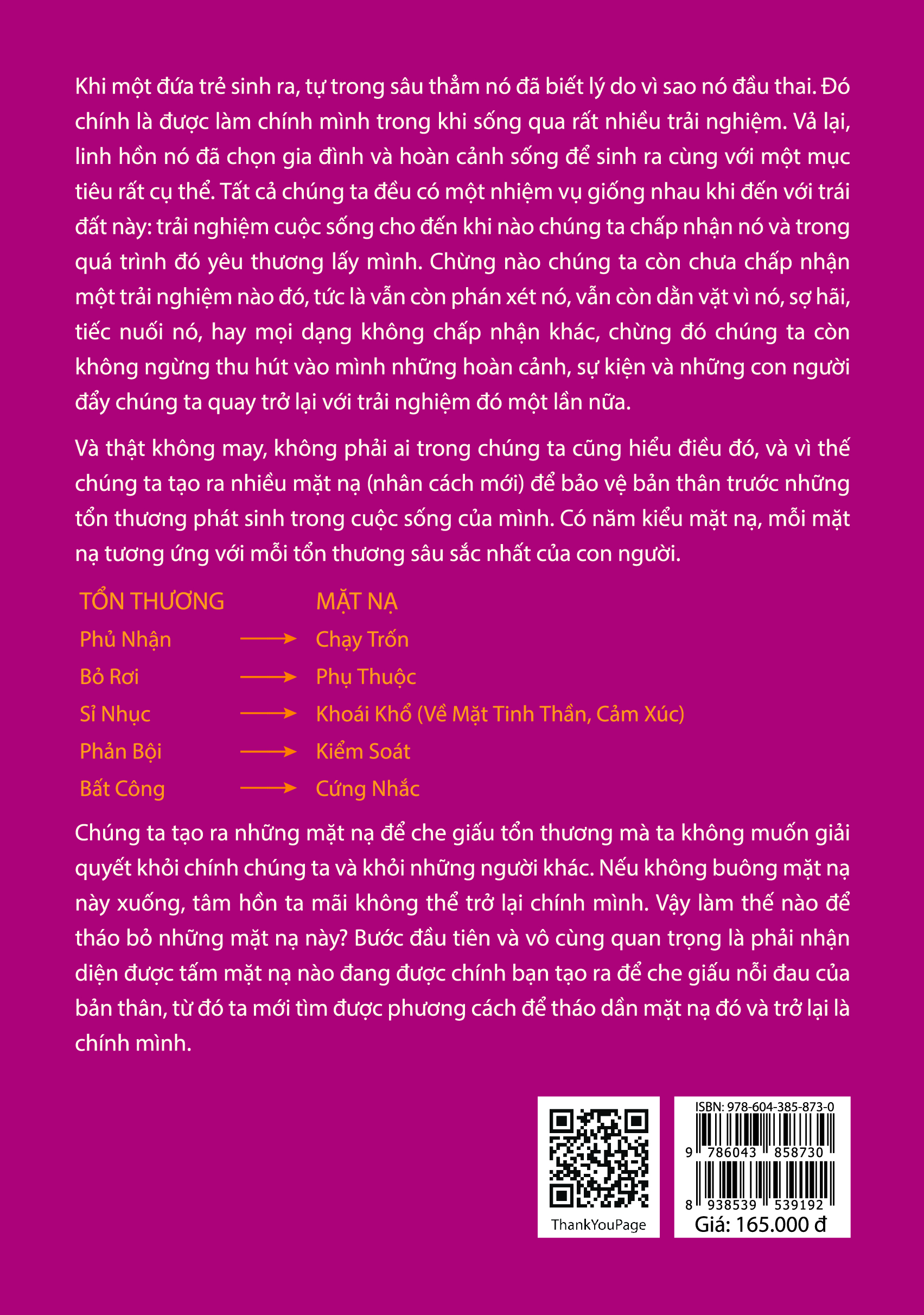 Trong cuốn sách này, bạn sẽ học được cách nhận ra cơ chế của những tổn thương và biết được khi nào thì chúng bị kích hoạt. Để chữa lành được tổn thương thì chúng ta nhất định phải nhận ra vô vàn các trường hợp mà cái tôi (mặt nạ nguỵ trang của chúng ta) dẫn dắt suy nghĩ, lời nói và hành động của chúng ta.