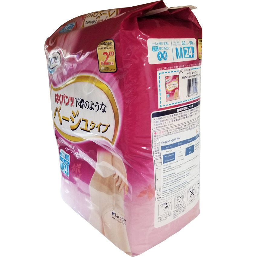 - Màu sắc thời trang: màu da Tã - Bỉm quần người lớn LiveDo Nhật Bản Livedo là thương hiệu tã giấy cho người lớn đầu tiên và được bán phổ biến nhất tại Nhật Bản. Sản phẩm được nghiên cứu và sản xuất tại công ty LiveDo Nhật Bản, đáp ứng những quy định nghiêm ngặt nhất về chất lượng thành phẩm đầu vào và đầu ra. Tã Bỉm quàn LiveDo Nhật Bản được sản xuất từ vật liệu siêu thấm hút, giữ mát và khử mùi tốt. Thiết kế rãnh bên hông hoàn toàn chống rò rỉ chất lỏng, khả năng hấp thụ nhiều lần giúp duy trì bề mặt khô mát, không dính, không gây kích ứng da, mang lại cảm giác dễ chịu cho người sử dụng. Thiết kế tiện dụng Thiết kế mỏng gần giống như quần lót, có thể mặc mùa hè và không bị lộ. Phù hợp cho cả người đi bộ, đi du lịch. Chất liệu cao cấp