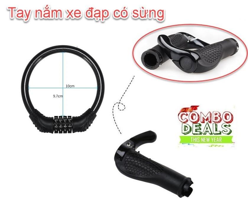 Combo Tay Nắm Cao Su Xe Đạp Có Sừng và khóa chống chộm xe đạp 4 số đổi mã
