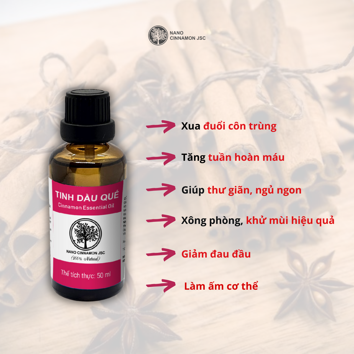 Tinh Dầu Vỏ Quế TOKI MORI Xuất Khẩu Nhật Bản (50ml) Nguyên Chất Thiên Nhiên, Xông Phòng, Khử Mùi, Kháng Khuẩn, Đuổi Muỗi, Ngủ Ngon, Giảm Stress, An Toàn Cho Trẻ. 5 LÝ DO