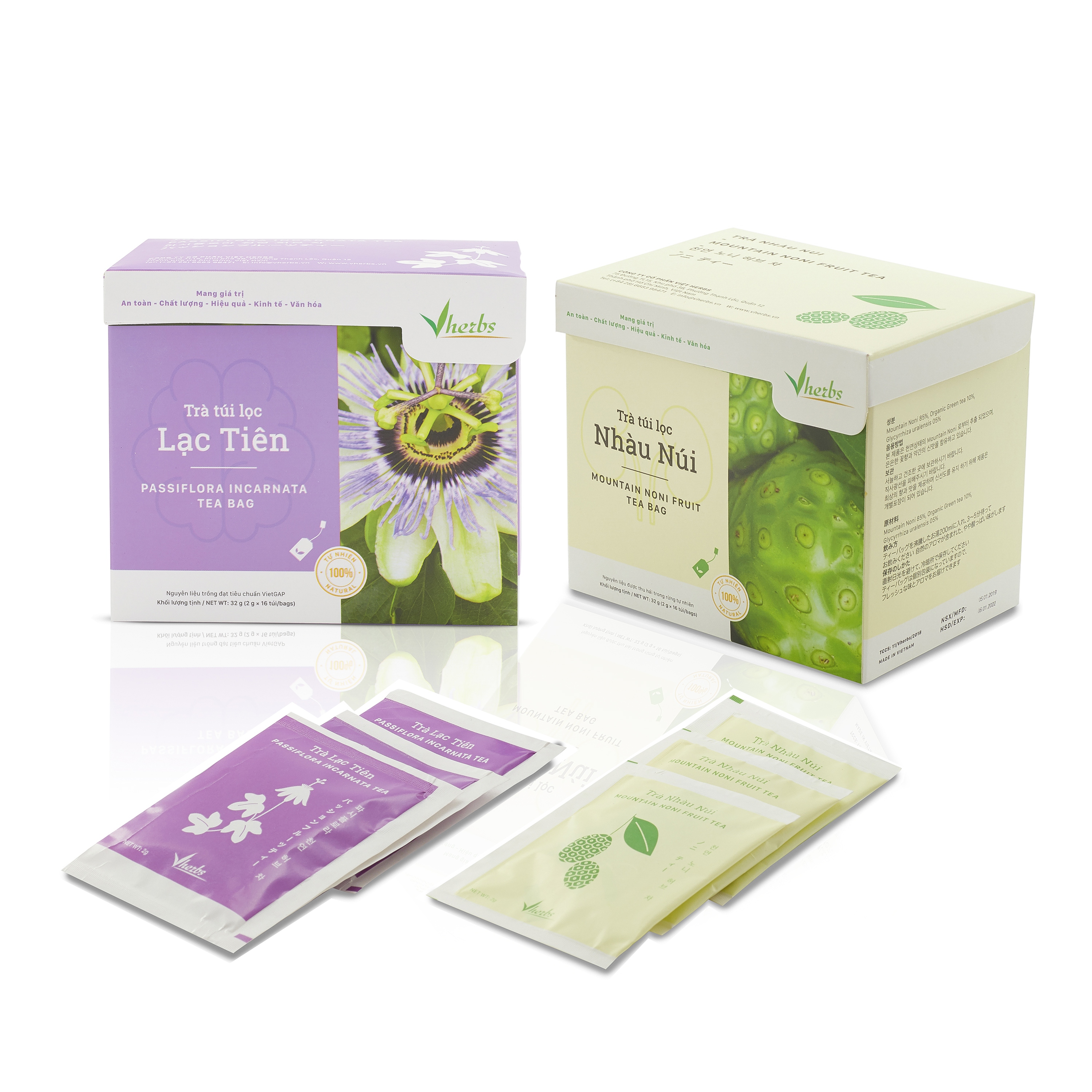 TRÀ THẢO DƯỢC  - TRÀ CỦA SỨC KHỎE VÀ SẮC ĐẸP Các loại trà thảo dược từ xa xưa nổi tiếng là đem lại lợi ích cho sức khỏe, nhưng tại sao nó lại thực sự mang lại lợi ích cho sức khỏe của chúng ta ? Trà thảo dược trông giống như trà và được pha theo cách tương tự như trà, nhưng nó thực sự không phải là trà bởi vì nó không được chế biến từ các loại trà (Camellia sinensis). Trà thảo dược là lọai nước được chiết suất từ các loại thảo dược. Nó được làm từ hỗn hợp của lá khô, các loại cỏ  các loại hạt, vỏ cây, quả, hoa… tạo ra hương vị đặc trưng của mỗi loại Không giống như các hình thức khác của trà, trà thảo dược không chứa caffeine. Nó có hương vị thanh nhẹ  và rất dễ uống. Trà thảo dược có thể chỉ được bào chế từ một loại thảo dược ( độc vị) hoặc nó có thể được phối trộn từ các loại thảo dược để tạo ra những lọai trà cho mục đích cụ thể như thư giãn, trẻ hóa hoặc giúp giải quyết một số bệnh  nào đó. Giới thiệu với quý khách BỘ TRÀ NGŨ HÀNH ( 5 sản phẩm) của Việt Herbs với 5 màu sắc, 5 hương vị với 5 công dụng khác nhau Các sản phẩm Trà thảo dược của Vherbs được chế biến từ nguồn dược liệu trồng tại Việt Nam theo tiêu chuẩn VietGAP và GACP-WHO. Chúng tôi luôn hướng đến luôn hướng đến việc thực hiện sản xuất xanh, phát triển bền vững, mang lại lợi ích sức khỏe cho cộng đồng. TRÀ LẠC TIÊN: GIẢM CĂNG THẲNG, LO ÂU, MẤT NGỦ - Thành phần nguyên liệu chính: Lạc tiên tây, Táo nhân, tim sen