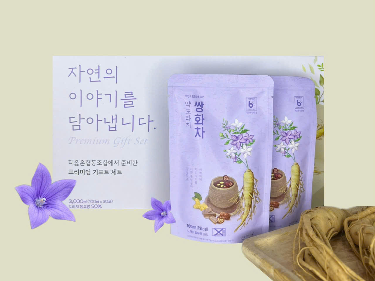 Thành phần: Rễ Cát cánh 50% (Hàn Quốc), fructo-oligosaccharide 10% (Hàn Quốc), mẫu đơn trắng 8% (Hàn Quốc), địa hoàng 5% (Hàn Quốc), đương quy 5% (Hàn Quốc), xuyên khung 5% (Hàn Quốc), gừng khô 4% (Hàn Quốc), táo tàu 4% (Hàn Quốc), quế 3% (VN), cam thảo 1% (Hàn Quốc)