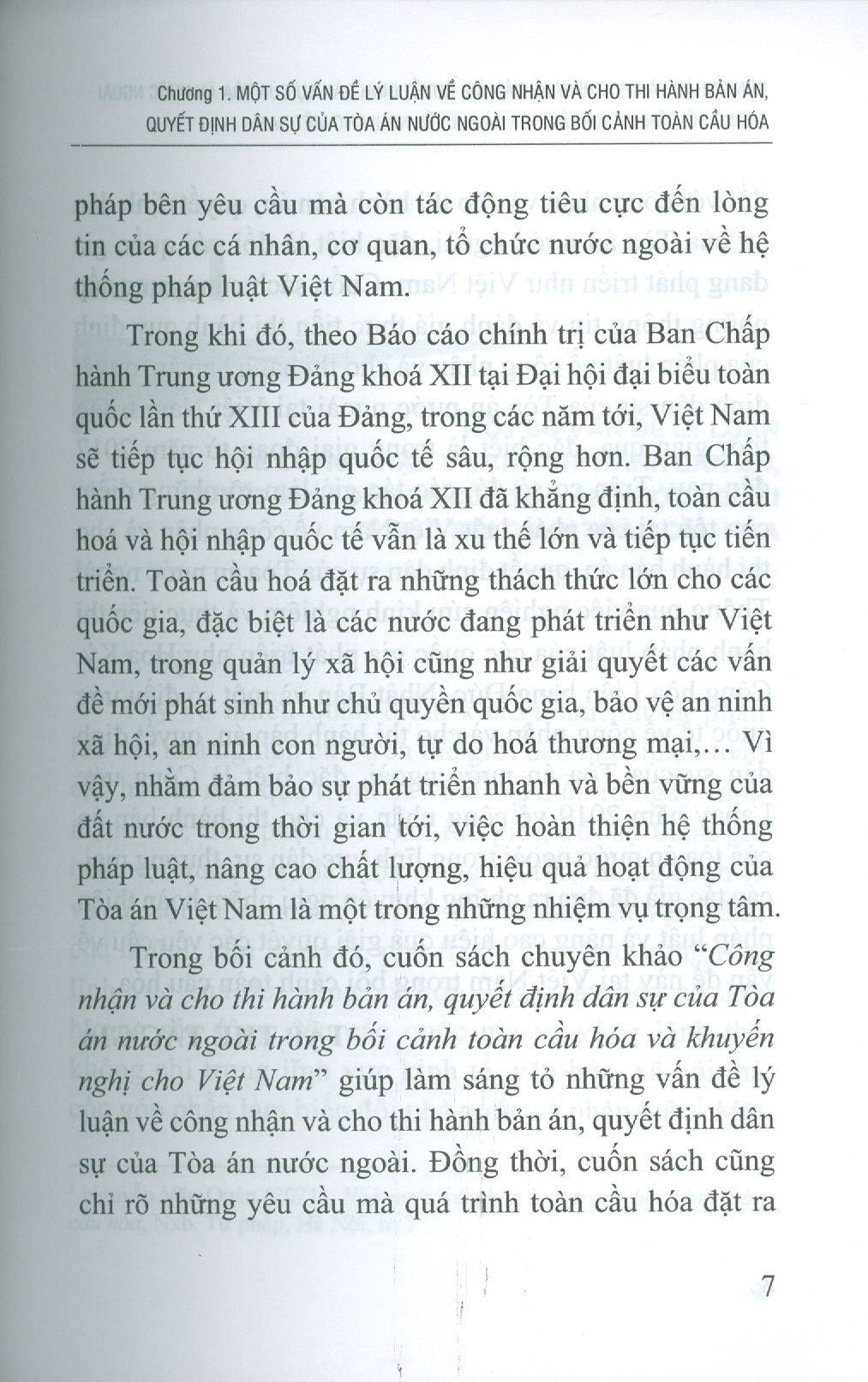 ✨Công Nhận Và Cho Thi Hành Bản Án, Quyết Định Dân Sự Của Toà Án Nước Ngoài Trong Bối Cảnh Toàn Cầu Hoá Và Khuyến Nghị Cho Việt Nam (Sách chuyên khảo) - TS. Nguyễn Thu Thuỷ chủ biên