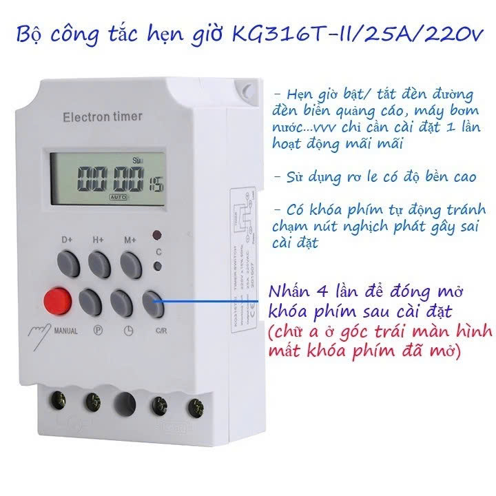 Hướng dẫn sử dụng công tắc hẹn giờ bật tắt thiết bị điện KG316 T-II công suất lớn 25A