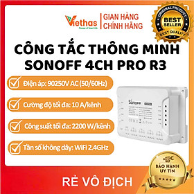Công tắc WiFi RF 4 cổng SONOFF 4CH PRO R3 ngoài tính năng ưu việt điều khiển cùng lúc 4 thiết bị trên app eWelink cũng như bằng Remote 433mhz như phiên bản 4CH Pro R2 được ứng dụng cho giải pháp cửa cuốn, rèm cửa, cửa nhà kho, quạt trần, quạt tường,ông minh; nâng cấp đáng chú ý của Sonoff 4CH PRO R3 mà Sonoff Việt Nam phân phối là khả năng truy cập vào 3 chế độ hoạt động của thiết bị này rất nhanh chóng.