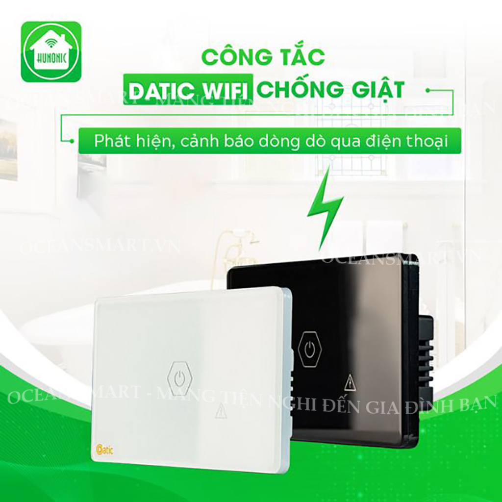 Công Tắc Thông Minh Wifi Chống Giật Cho Bình Nóng Lạnh Datic - DTSWU1    Hunonic đã cho ra đời dòng sản phẩm Công tắc chống giật giúp bảo vệ người dùng khỏi nguy cơ giật điện khi tiếp xúc với các thiết bị điện bị lỗi hoặc hỏng hóc. Khi có sự rò rỉ dòng điện, công tắc chống giật sẽ tự động ngắt mạch nguồn điện, ngăn không cho dòng điện gây hại tiếp tục đi qua cơ thể người.   Với sản phẩm công tắc chống giật bình nóng lạnh thông minh, các bạn sẽ không cần phải lo lắng về việc tắt/bật nguồn điện, công tắc chống giật tự động hoạt động khi cần thiết. Bạn có thể dễ dàng kiểm soát các thiết bị điện và tiện ích gia đình từ xa thông qua điện thoại di động hoặc máy tính bảng.   Dòng công tắc chống giật Hunonic có mẫu mã tương tự công tắc cảm ứng công suất lớn, với mặt kính cường lực và viền bo cong. Cách lắp đặt và sử dụng tương tự các công tắc cảm ứng thông minh Hunonic   Trong quá trình sử dụng điện nói chung và bình nóng lạnh nói riêng, nhiều người đã không chú ý đến an toàn về điện và xảy ra những việc không mong muốn.   Công tắc chống giật thông minh Hunonic giúp cho cuộc sống trở nên an toàn hơn ***THÔNG SỐ KỸ THUẬT: