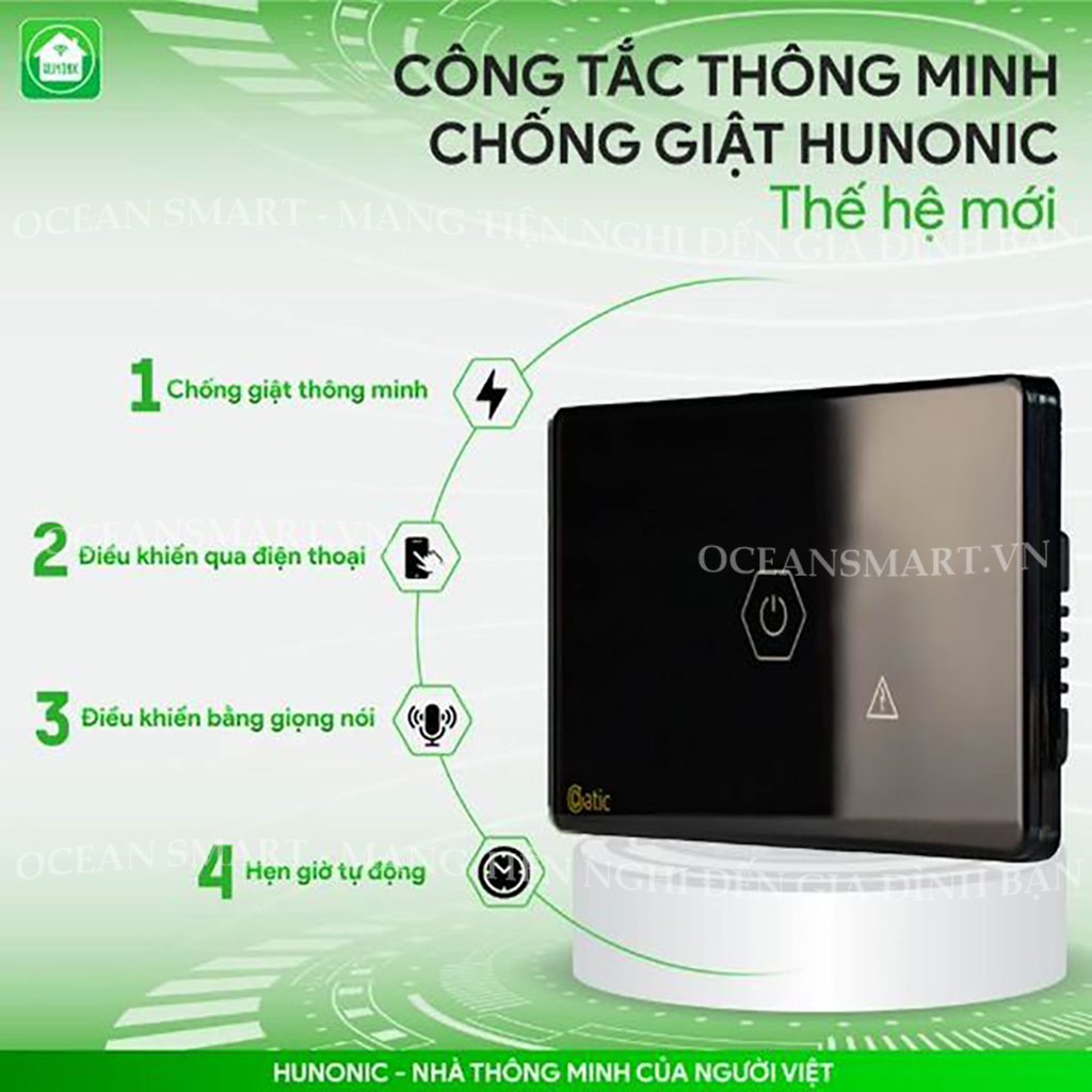 Công Tắc Wifi Chống Giật Cho Bình Nóng Lạnh Hunonic | Công Tắc Thông Minh Wifi | OCEANSMART.VN