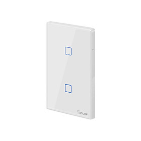 Sonoff TX T2 chuẩn US 2 cổng là dòng công tắc WiFi cảm ứng thông minhcho phép tắt/mở, quản lý từ xa qua WiFi trên ứng dụng eWeLink và nút cảm ứngtắt mở trên công tắc.
