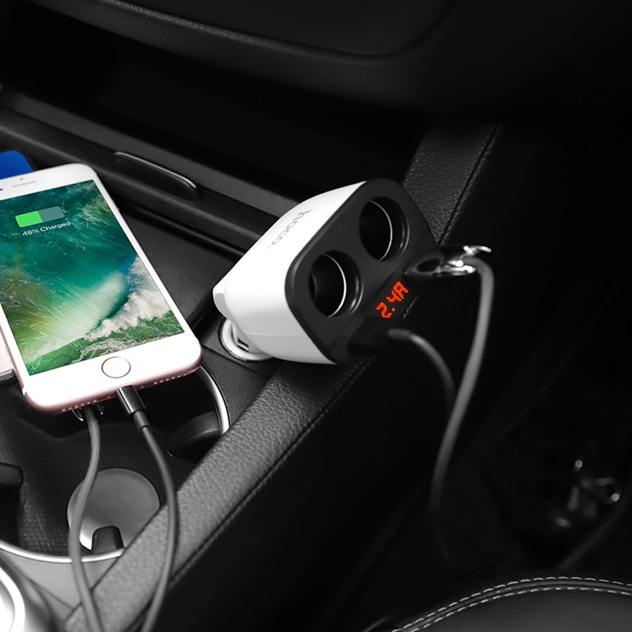 ✨Củ sạc 2 cổng 3.4A kèm 2 cổng tẩu trên xe hơi Hoco Z28 + Cáp Micolo - Chính Hãng