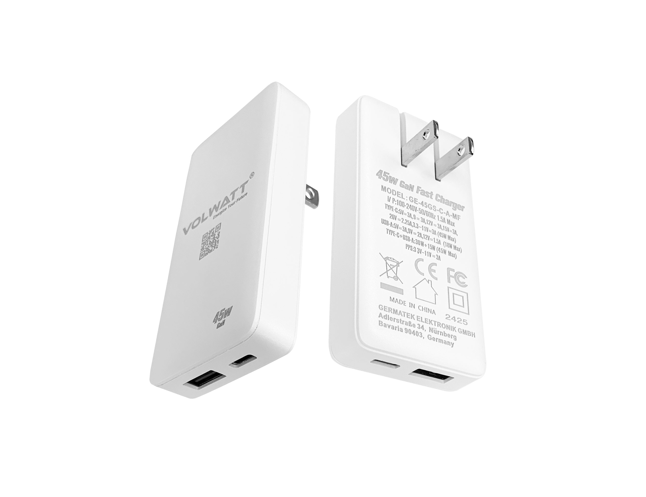 Volwatt GE-45GS-C-A-MF 45W GaN Fast Charger với thiết kế siêu mỏng hiếm có trên thị trường, củ sạc này không chỉ giúp sạc pin cực nhanh mà còn tiết kiệm không gian và dễ dàng mang theo trong túi xách, túi quần. Công nghệ GaN tiên tiến đảm bảo hiệu suất cao, mang lại sự tiện lợi và hiệu quả vượt trội mà ít sản phẩm nào có thể so sánh được. Hãy trải nghiệm sự khác biệt với Volwatt – nơi công nghệ và thiết kế hoàn hảo gặp nhau. Bộ sạc kèm cáp model GE-45GS-C-A-MF 45W Plus Bộ sạc không kèm cáp model GE-45GS-C-A-MF 45W Tại sao nên chọn Volwatt GE-45GS-C-A-MF 45W GaN Fast Charger?