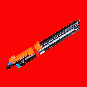 - Thuyết minh: Cụm trống ( Drum Cartridge ), hay còn gọi là khối trống, một trong những bộ phận quan trọng của máy photocopy. Cụm trống có nhiệm vụ chuyển đổi hình ảnh từ bản gốc sang bản sao. Do có vai trò quan trọng trong quá trình sao chép, nên trống ( Drum ) cần được bảo quản và bảo dưỡng tốt, chỉ cần một vết xước nhỏ cũng có thể làm trống bị hỏng và gây ảnh hưởng đến chất lượng bản in. Tìm hiểu thêm về trống máy photocopy: Trống còn có tên gọi là trống từ, trống OPC ( Organic Photo Conductor - Quang dẫn ảnh ). Trống có hình trụ rỗng, thường được làm từ hợp kim phi từ tính như nhôm, hợp kim nhôm. Trên bề mặt trống được phủ lớp quang dẫn. Chất quang dẫn là hợp chất đặc biệt có hai tính chất: Một là tính hiễm điện - dễ nhiễm điện tích âm và bảo lưu được điện tích trong bóng tối. Hai là tính cảm quang, sẽ bị mất điện tính khi có ánh sáng chiếu vào, ánh sáng càng mạnh thì điện tích mất đi càng nhiều và ngược lại (tỉ lệ thuận với cường độ ánh sáng chiếu vào). Do đảm nhiệm vai trò chính trong quá trình sao chụp, tạo ảnh, nên trống phải được bảo quản, bảo dưỡng tốt, chỉ bị một vết xước nhỏ trên bề mặt trống, thì trên bản in sẽ bị vệt đen kéo dài, bản in bị lem nhem…