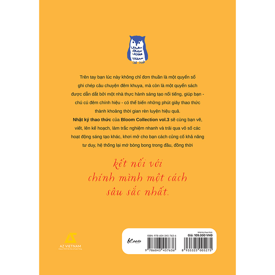 Trên tay bạn lúc này không chỉ đơn thuần là một quyển sổ ghi chép câu chuyện đêm khuya, mà còn là một quyển sách được dẫn dắt bởi một nhà thực hành sáng tạo nổi tiếng, giúp bạn - chú cú đêm chính hiệu - có thể biến những phút giây thao thức thành khoảng thời gian rèn luyện hiệu quả. Nhật ký thao thức của Bloom Collection vol.3 sẽ cùng bạn vẽ, viết, lên kế hoạch, làm trắc nghiệm nhanh và trải qua vô số các hoạt động sáng tạo khác, khơi mở cho bạn cách củng cố khả năng tư duy, hệ thống lại mớ bòng bong trong đầu, đồng thời kết nối với chính mình một cách sâu sắc nhất.