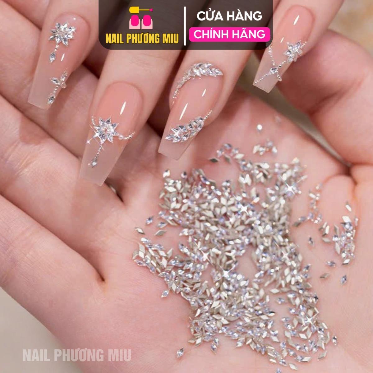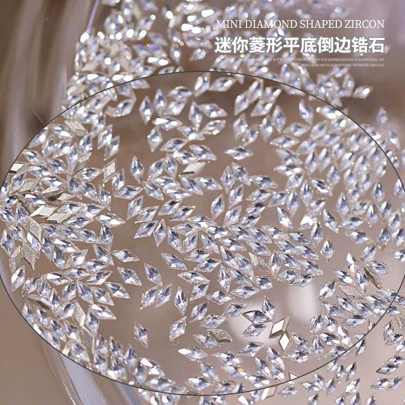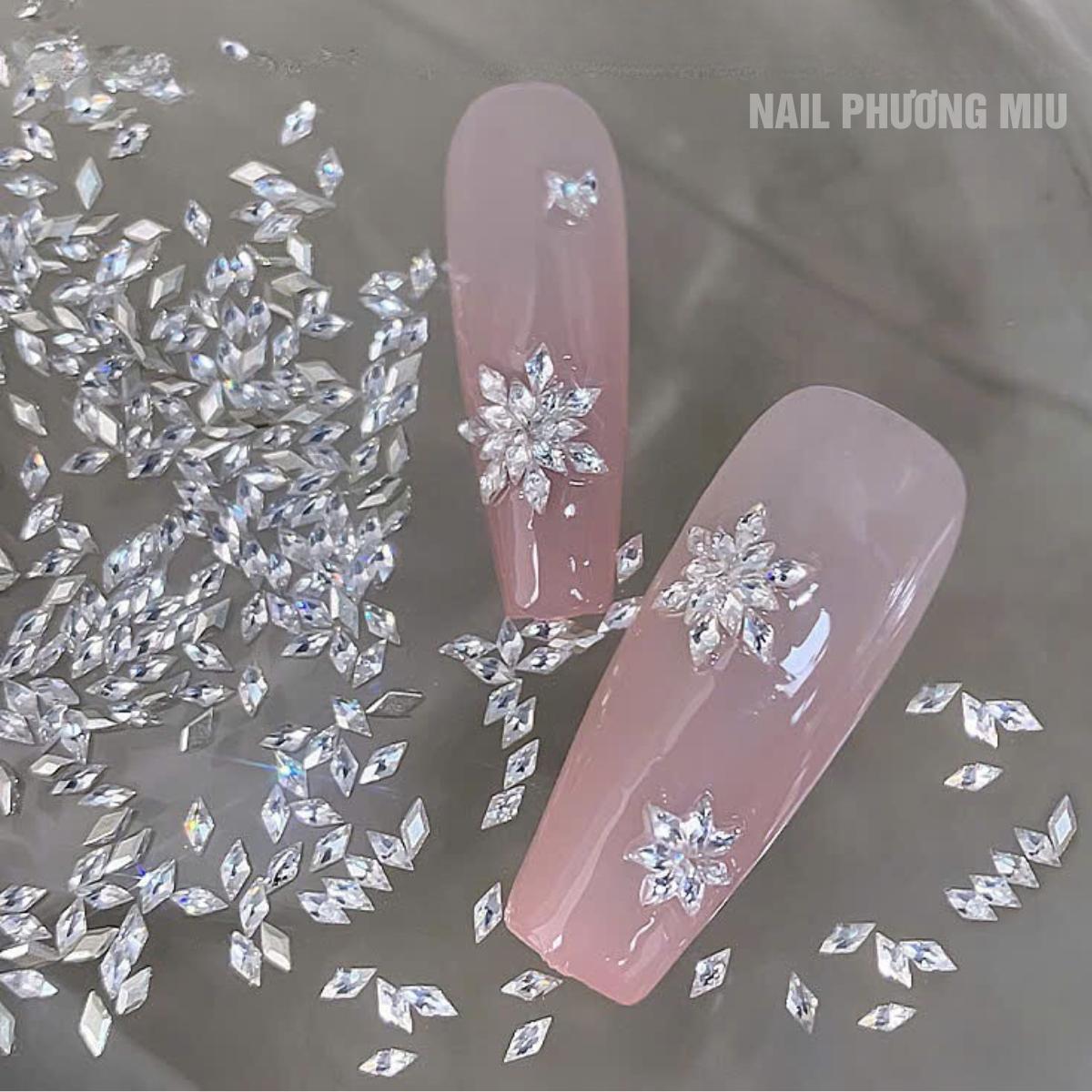 ✨Đá Khối Diamond Chân Bằng Hình Thoi Gắn Móng Siêu Sáng, Set 100 Viên Charm Làm Nail Size Mini Màu Trắng Thủy Tinh Lấp Lánh