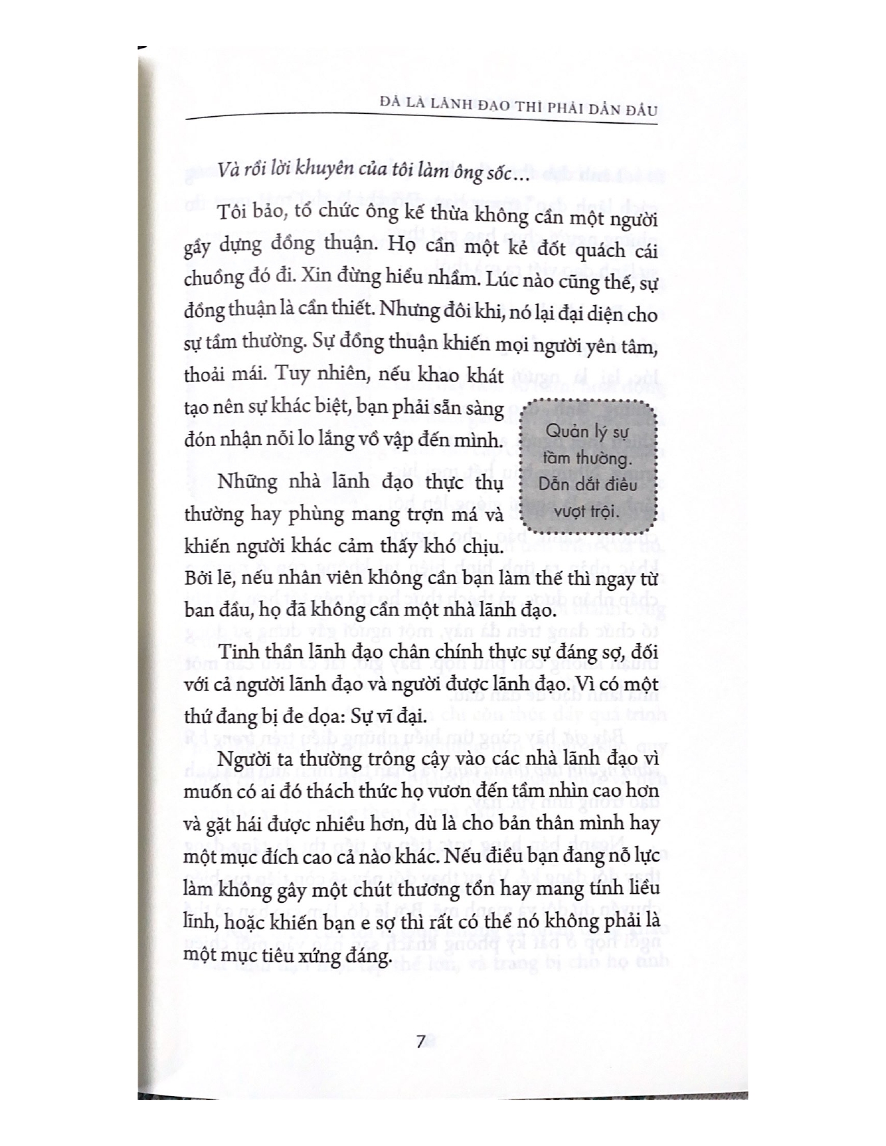 Từ trước đến nay, lãnh đạo luôn là vấn đề nhức nhối của bất kỳ ai trong các tổ chức, công ty. Các vị sếp không biết phải làm sao để “chinh phục” nhân viên, còn cấp dưới thì chẳng mấy khi hài lòng hoàn toàn với cấp trên. Nếu bạn đã, đang (và chắc chắn sẽ) gặp tình thế này, hãy thử dành đôi chút thời gian nghiền ngẫm ĐÃ LÀ LÃNH ĐẠO THÌ PHẢI DẪN ĐẦU.