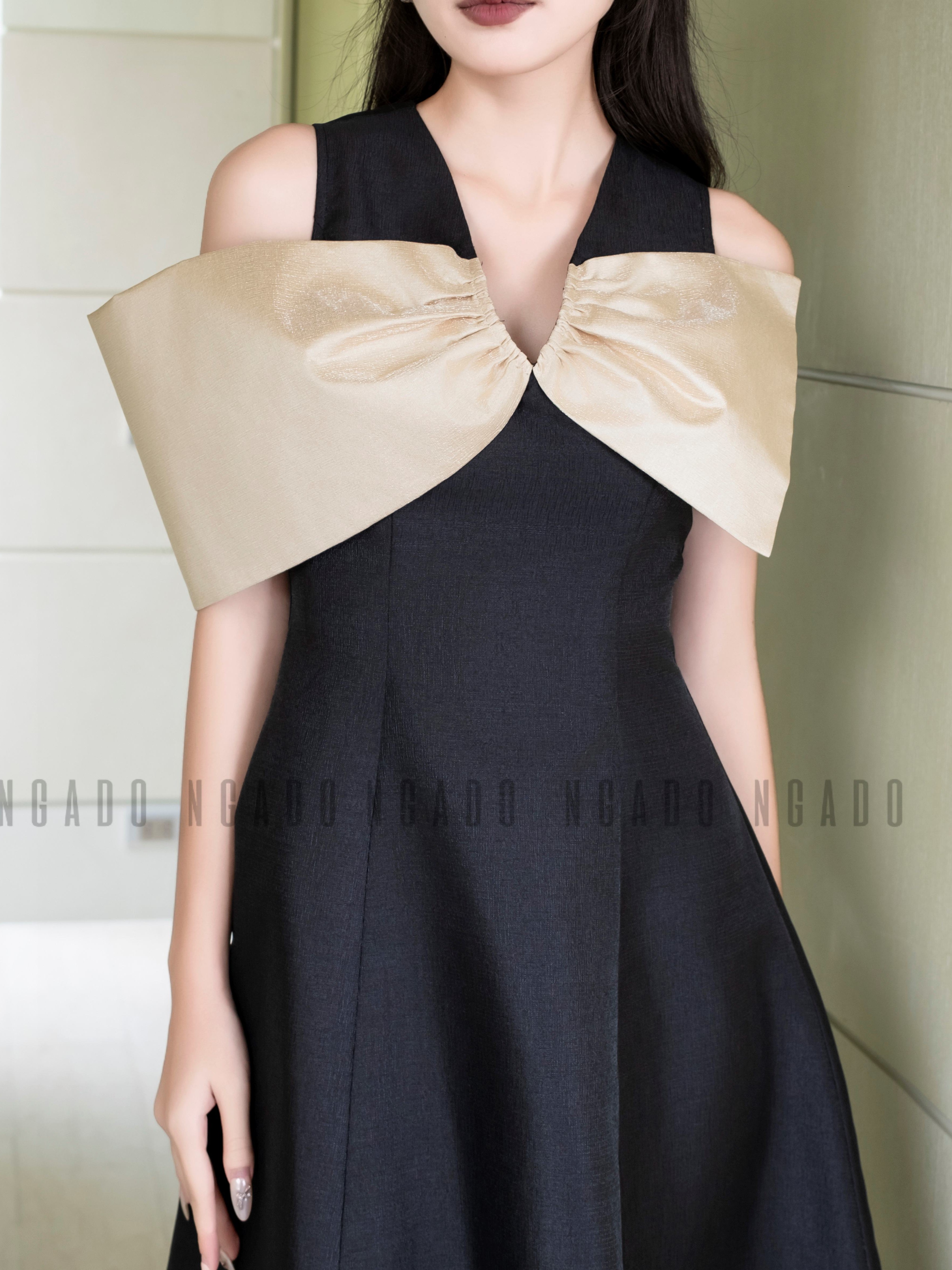 ✨Đầm đen tay nơ NGADO , Đầm xòe , Đầm dự tiệc