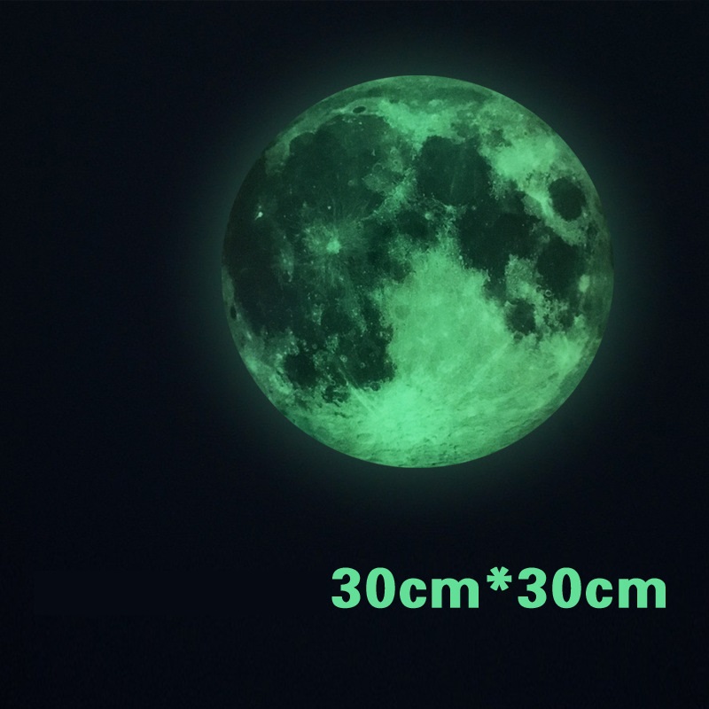 Mặt trăng dạ quang 30 x 30 cm với họa tiết dạ quang nổi trong đêm sẽ mang đến một không gian lung linh cho căn phòng của bạn.Sản phẩm dán được trên nhiều bề