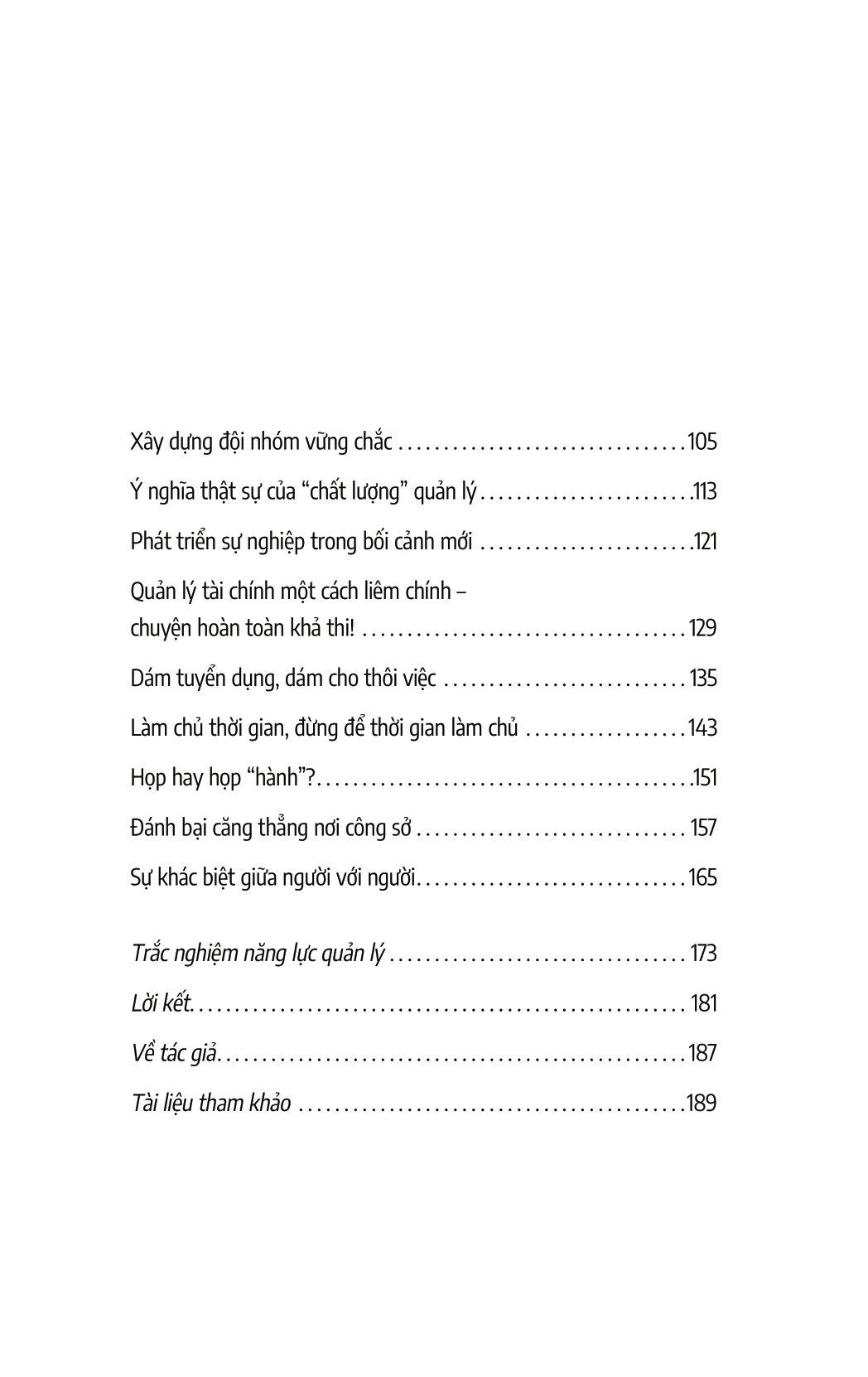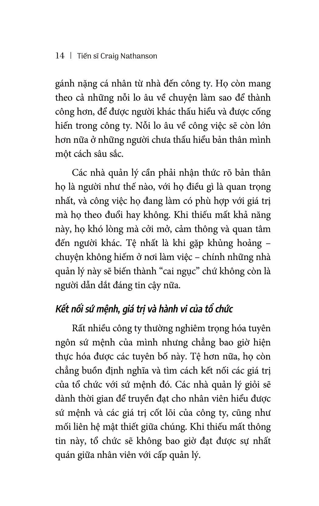 ĐẮC NHÂN TÂM CHO NHÀ QUẢN LÝ: THU PHỤC LÒNG NGƯỜI BẰNG TÂM VÀ TÀI Cả thế giới nói chung đã và đang trải qua nhiều cuộc khủng hoảng kinh tế. Mặc dù phần lớn nguyên nhân là do nạn tham nhũng, lòng tham của một số cá nhân trong giới tài chính và những vấn nạn liên quan, nhưng cũng không thể không đổ lỗi cho cách quản trị yếu kém của nhiều nhà quản lý. Phản ứng tức thời của hầu hết các công ty khi gặp khủng hoảng là sa thải hàng nghìn nhân viên – những người từng được xem là tài sản quý giá của tổ chức. Nếu quả thực lịch sử có xu hướng lặp lại, thì chỉ sau một năm, các công ty này sẽ phải tuyển lại toàn bộ nhân sự cho các vị trí mà họ đã sa thải với mức lương cao gấp đôi. Đắc nhân tâm cho nhà quản lý là phản ứng của tác giả Craig Nathanson trước cuộc khủng hoảng về năng lực quản lý. Chính vì năng lực yếu kém, cơ cấu tổ chức suy yếu và tư tưởng chú trọng thưởng phạt mà các nhà quản lý ngày nay đang bị gò bó trong chính cái hệ thống mà họ quản lý. Và hy vọng duy nhất của chúng ta là các nhà quản lý này sẽ được khai sáng, hoặc những nhà quản lý tương lai sẽ được đào tạo một cách bài bản hơn. Hãy nhớ lại một nhà quản lý mà bạn từng làm việc dưới trướng, người đã khiến cho bạn cảm thấy vui vẻ và tự hào về bản thân. Sự chuyển biến tích cực đó chính là sức ảnh hưởng của một nhà quản lý biết thu phục lòng người bằng tâm và tài. Quản lý vừa là một nghệ thuật vừa là một môn khoa học. Nhà quản lý giỏi sẽ quan tâm đến sự phát triển của cả tổ chức lẫn nhân viên. Họ còn biết ưu tiên hoàn thành những việc quan trọng nhất. Với Đắc nhân tâm cho nhà quản lý, mục tiêu của tác giả Craig Nathanson là cung cấp những công cụ và phương pháp vừa đơn giản vừa hiệu quả để cải thiện quá trình quản lý trong các tổ chức. Quyển sách sẽ là nguồn ý tưởng thiết thực cho những nhà quản lý còn non trẻ, các sinh viên ngành quản lý, và tất nhiên là, cho những nhà quản lý có thâm niên đang cần thêm ý tưởng mới. Các trích đoạn hay trong sách Đắc nhân tâm cho nhà quản lý Xét trên nhiều phương diện, vai trò quản lý đòi hỏi ở bạn khả năng của một cảnh sát giao thông xuất sắc: Luôn biết cách chỉ đạo, dẫn dắt, truyền động lực và duy trì nguồn cảm hứng cho nhân viên, đồng thời phải biết giải quyết vấn đề và kiểm soát cảm xúc của bản thân lẫn mọi người xung quanh.